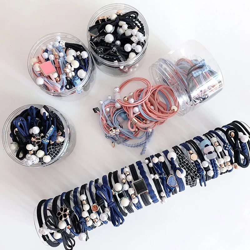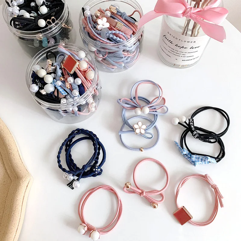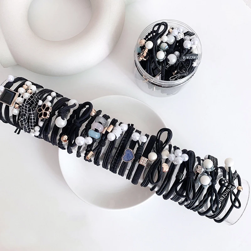 50/12PCS Women Elastic Hair Ties Pearls Fashion Girls Scrunchies Ponytail Holder Rubber band Hair Rope Hair Accessories