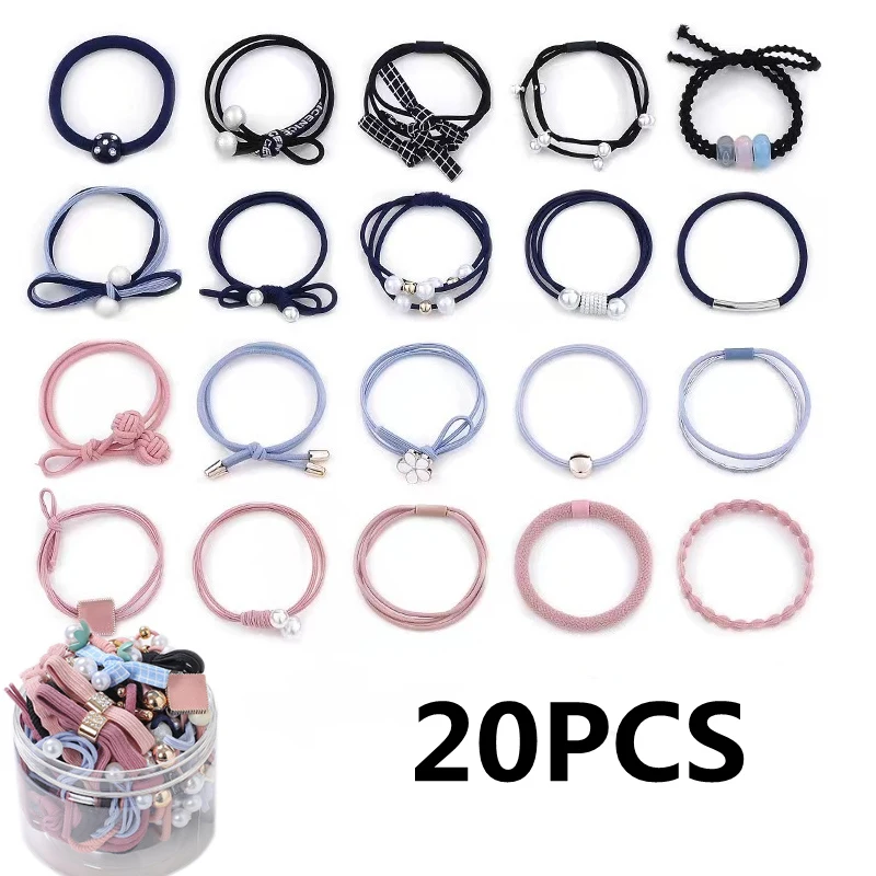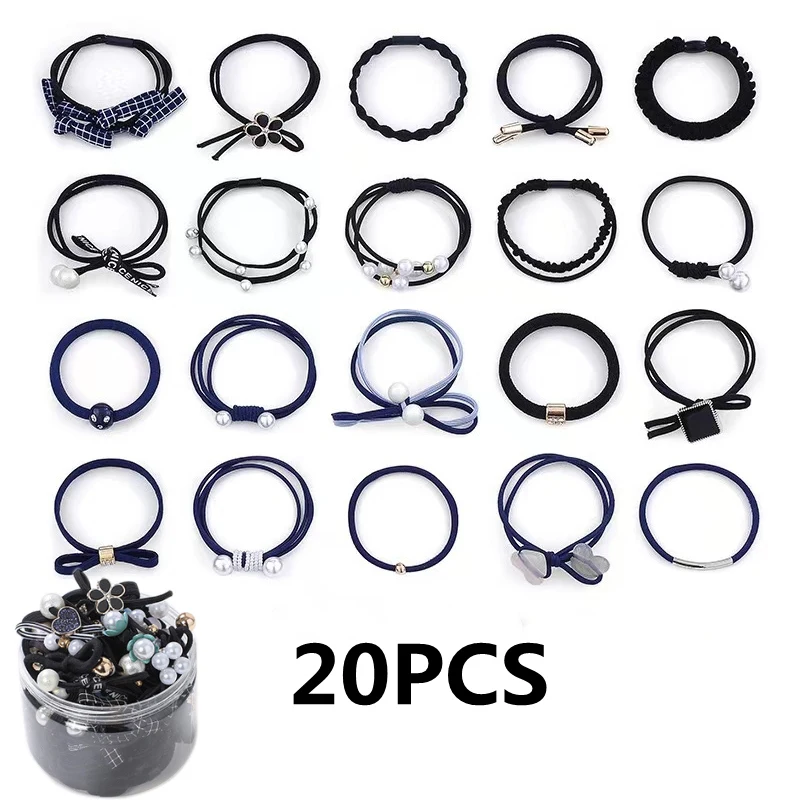 50/12PCS Women Elastic Hair Ties Pearls Fashion Girls Scrunchies Ponytail Holder Rubber band Hair Rope Hair Accessories Headdress