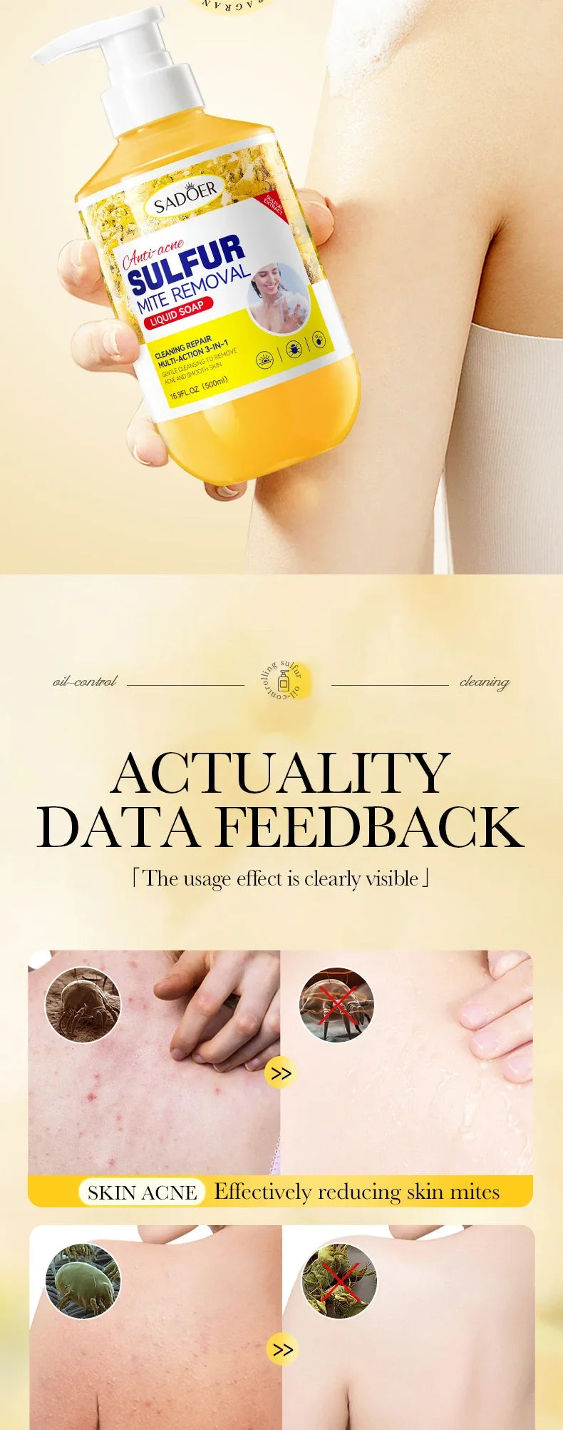 500ml Deep Cleansing Sulfur Mite Removal Body Wash Oil Control Shower Gel Bath and Body Cleansers