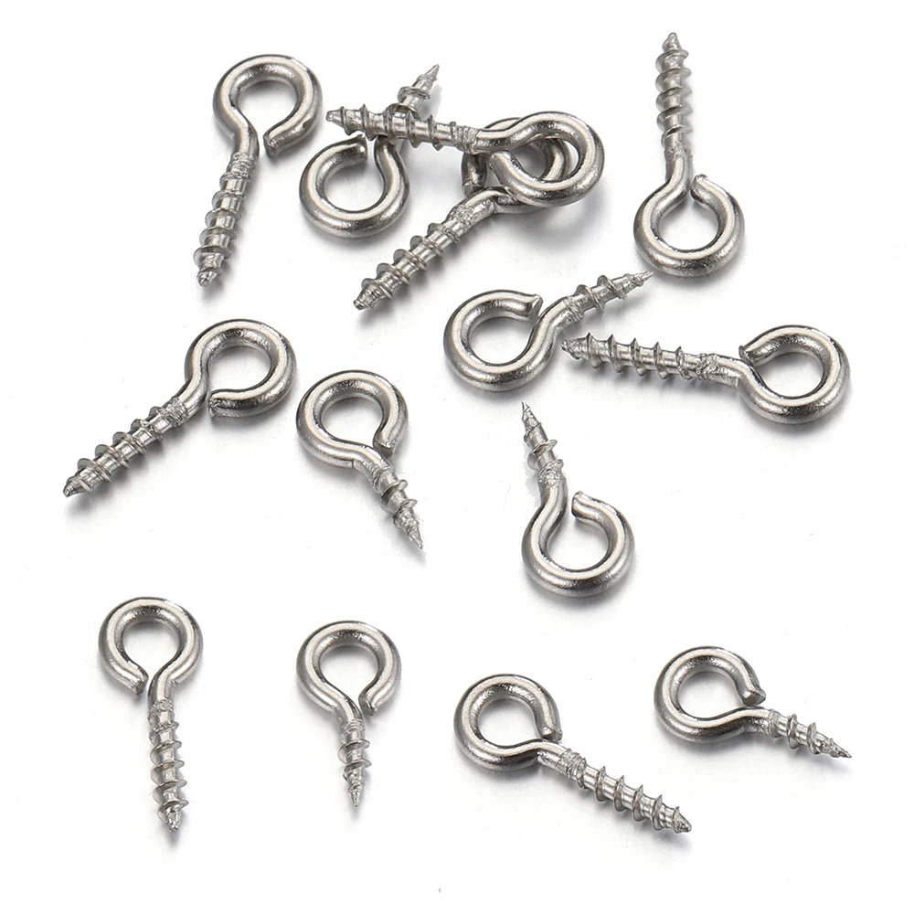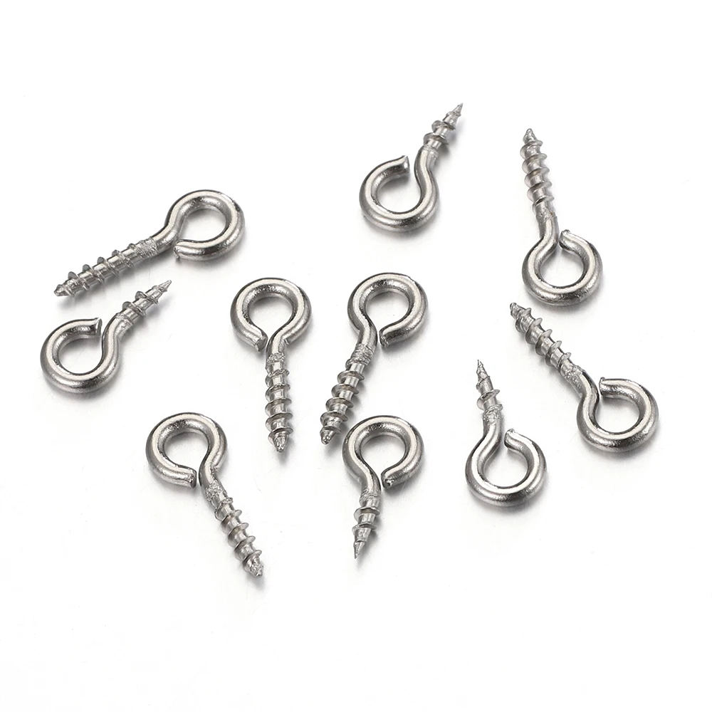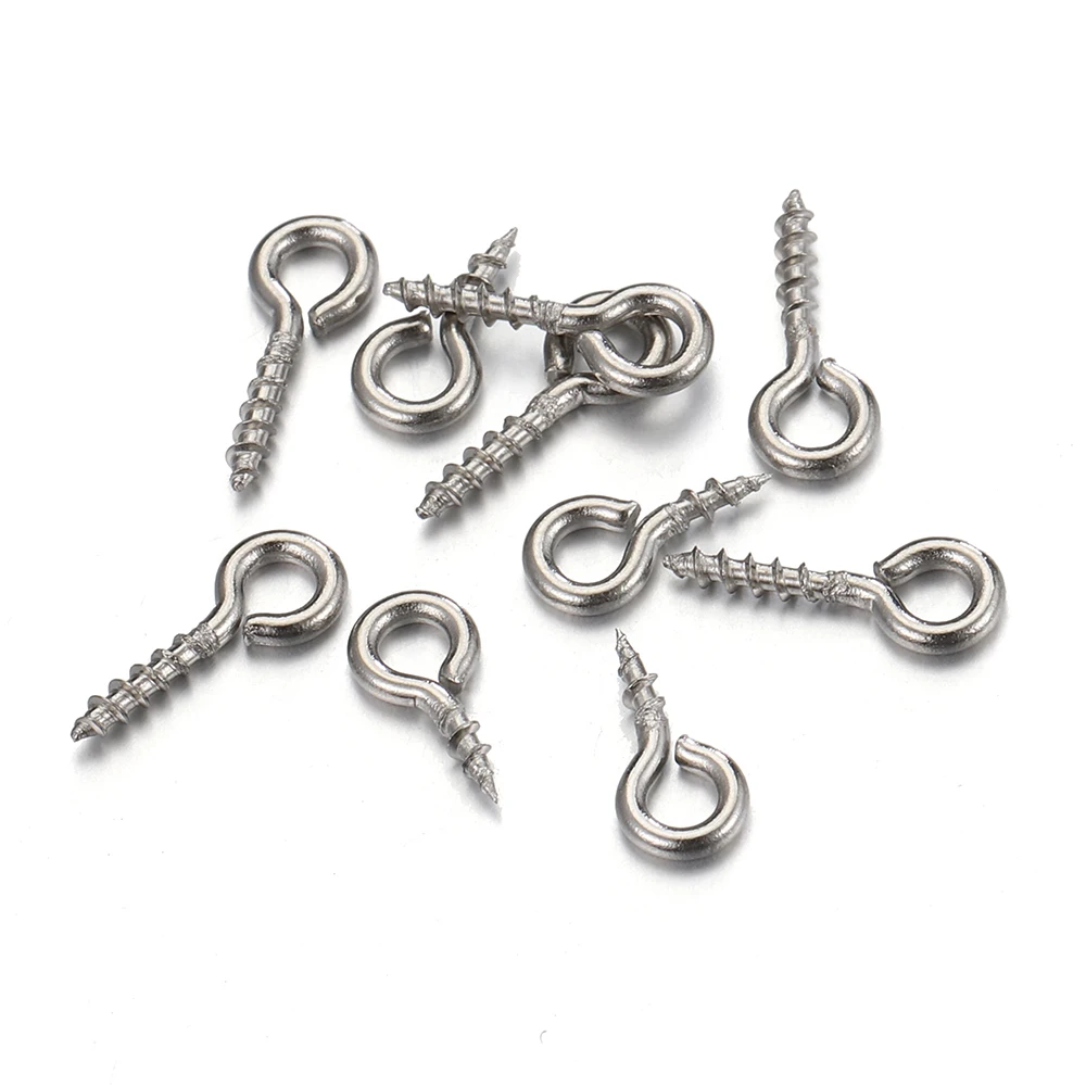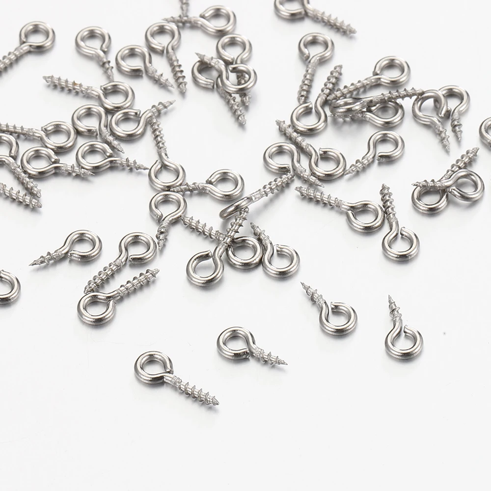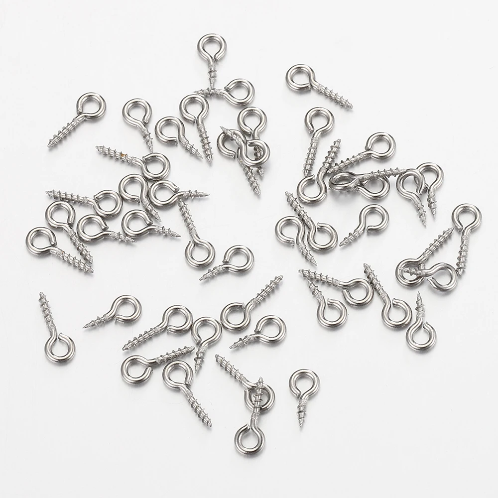 50pcs Stainless Steel Small Tiny Eye Pins Eyepins Hooks Eyelets Screw Gold Color Clasps Hooks for DIY Jewelry Making Findings