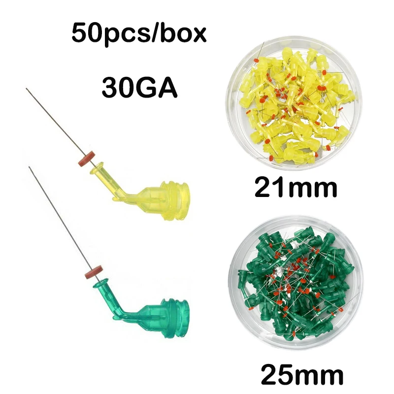 50Pcs Dental Endodontic Endo Irrigation Needle Tip Syringe Irrigator Disposable Root Canal Syringe Tips 30GA Double Side Hole