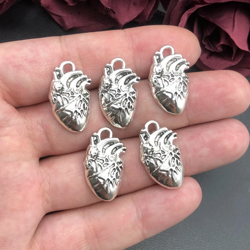 5pcs 25*14mm Human Heart Organ Charms Science Medicine Anatomical Pendant Biology Jewelry Finding.DIY.charms for jewelry making