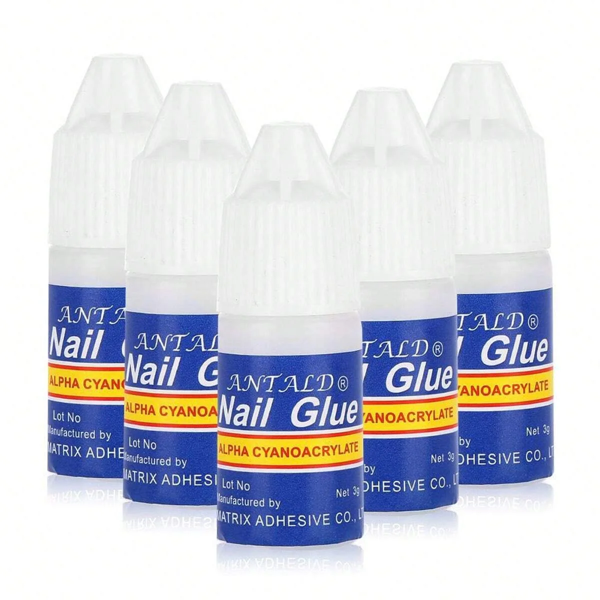 5pcs*3g Strong Adhesive Nail Glue -Fast Drying Nail Bond Glue for Acrylic False Nail Tips Gem Rhinestone Jewelry Sticky Glue Gel