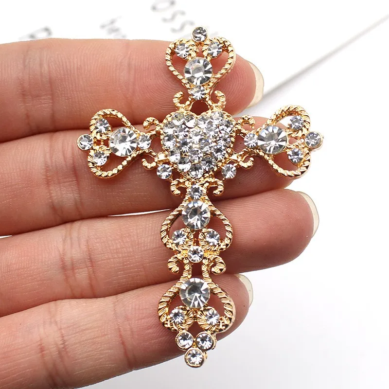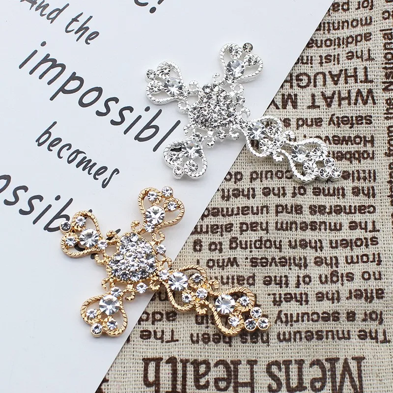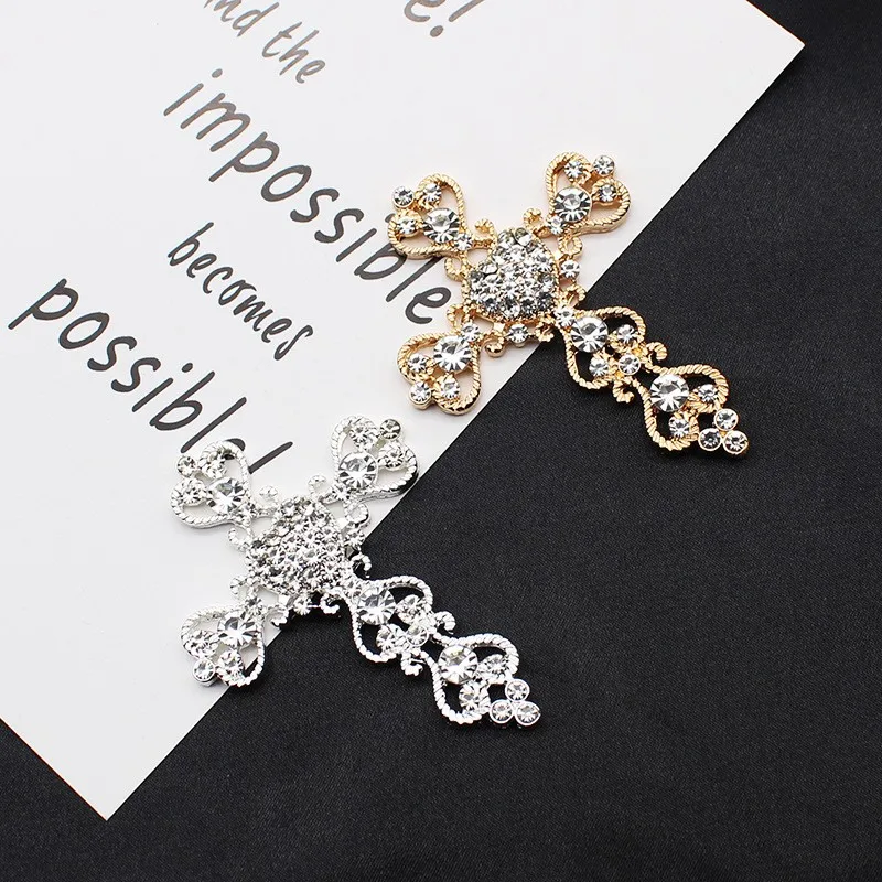 5Pcs 56 * 64MM Shiny Rhinestone Cross Alloy Jewelry Accessories Diy Wedding Dress Headwear Decoration Accessories