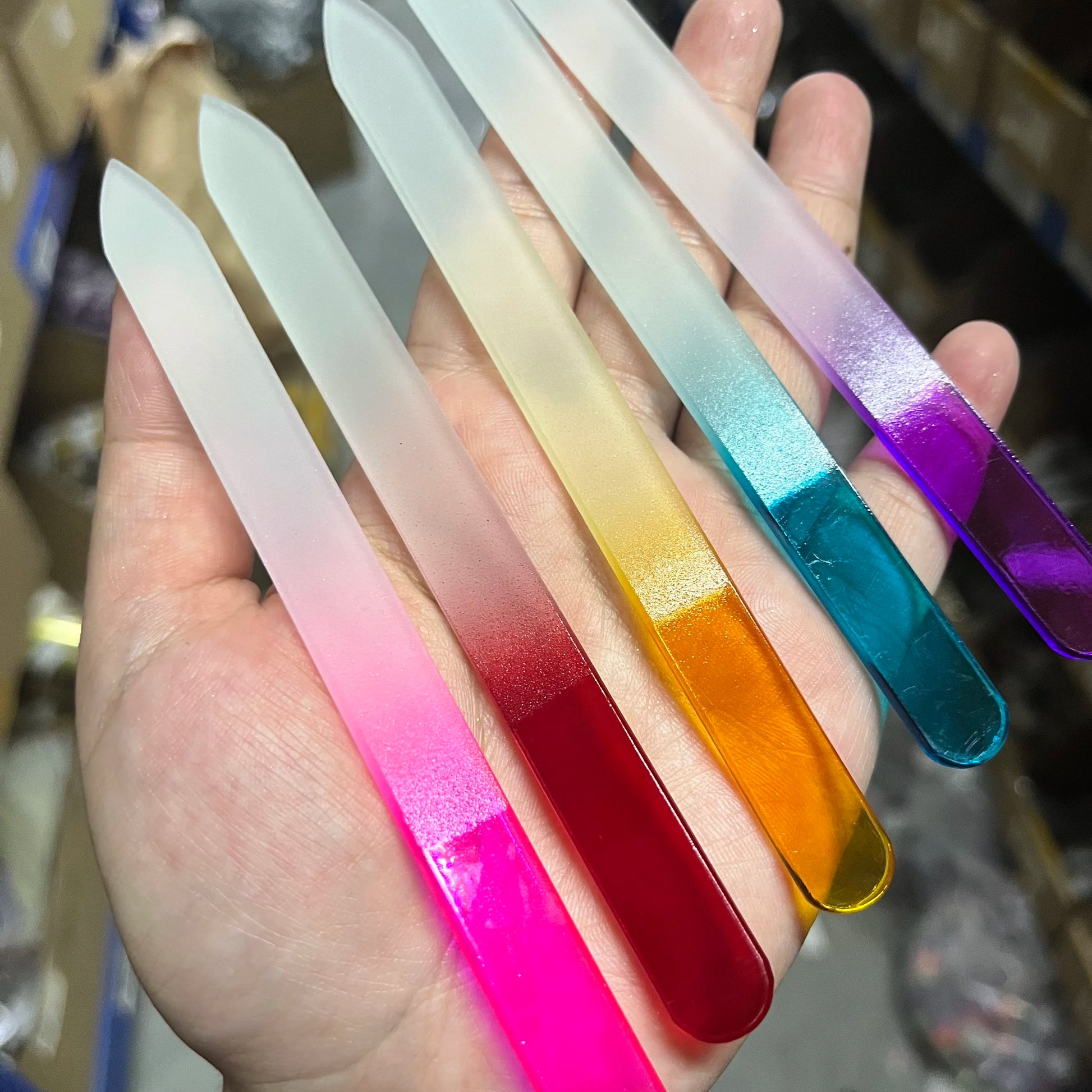 5pcs Glass Nail File Fingernail Files For Natural Nail Double-Sided Ombre Etched Travel Filer Professional Manicure Nail Tools *