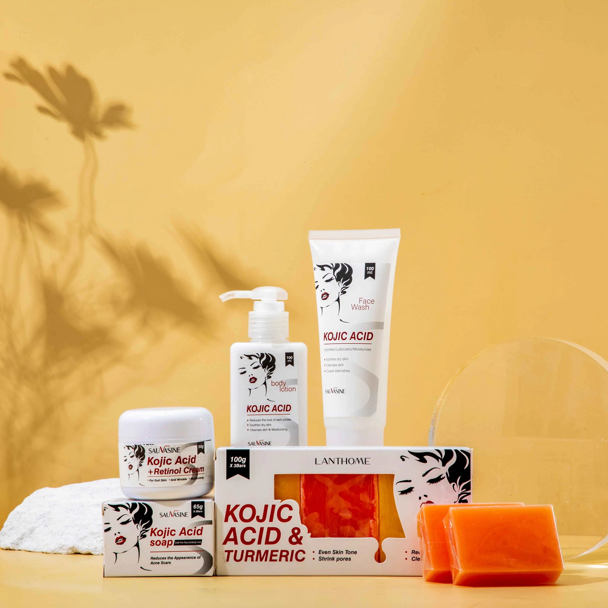 5PCS Kojic Acid Skin Care Set Kojic Acid Soap Moisturizing Facial Cream Body Lotion Face Cleanser Skin Care Products