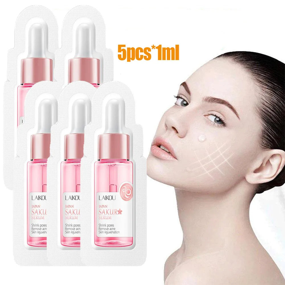 5pcs Serum Nourish Oil Control Rejuvenation Skin Facial Essence Skincare Face Care 1ml Travel Size