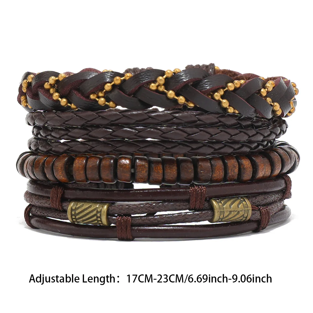 6/4PCS 3Style PU Wodeen Braided Wrap Leather Bracelet for Men Vintage Life Wood Beads Fashion Male Armband