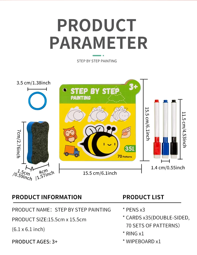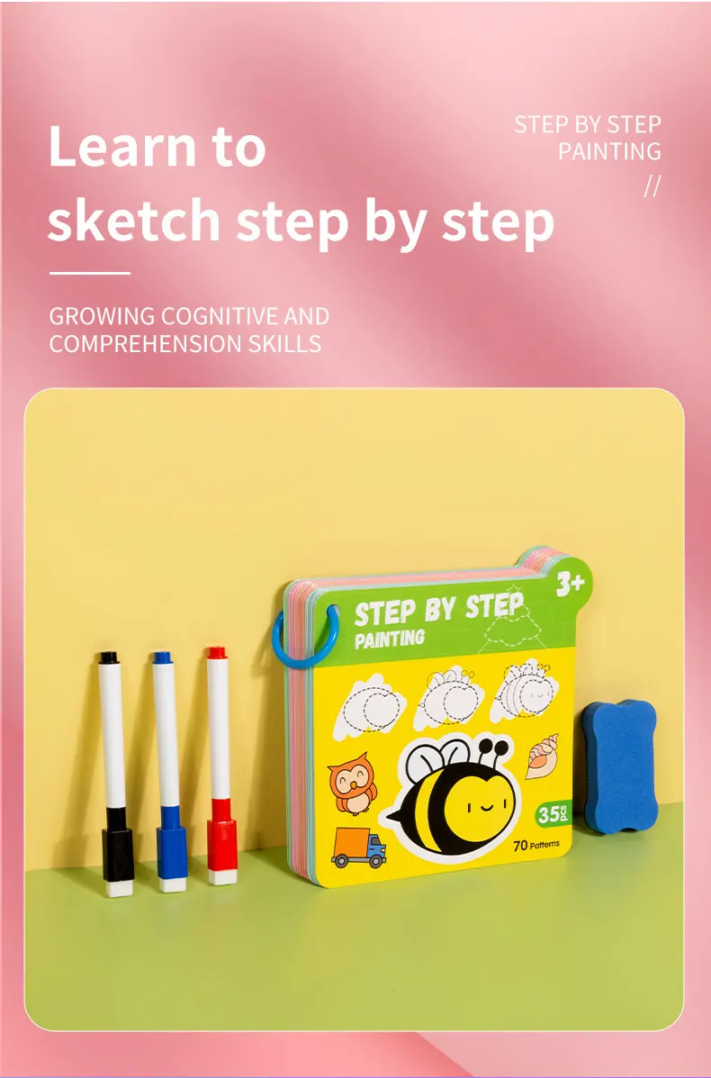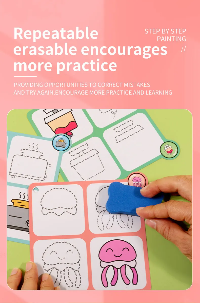 70 Patterns Step-By-Step Learning Simple Drawing Card Book, Reusable Graffiti Set, Cartoon Educational Line Drawing Introductory Enlightenment, Kindergarten Art Activity Teaching Aids, Drawing Skills and Pen Control Training