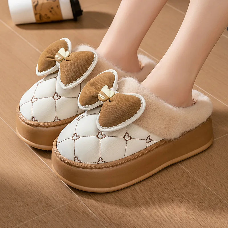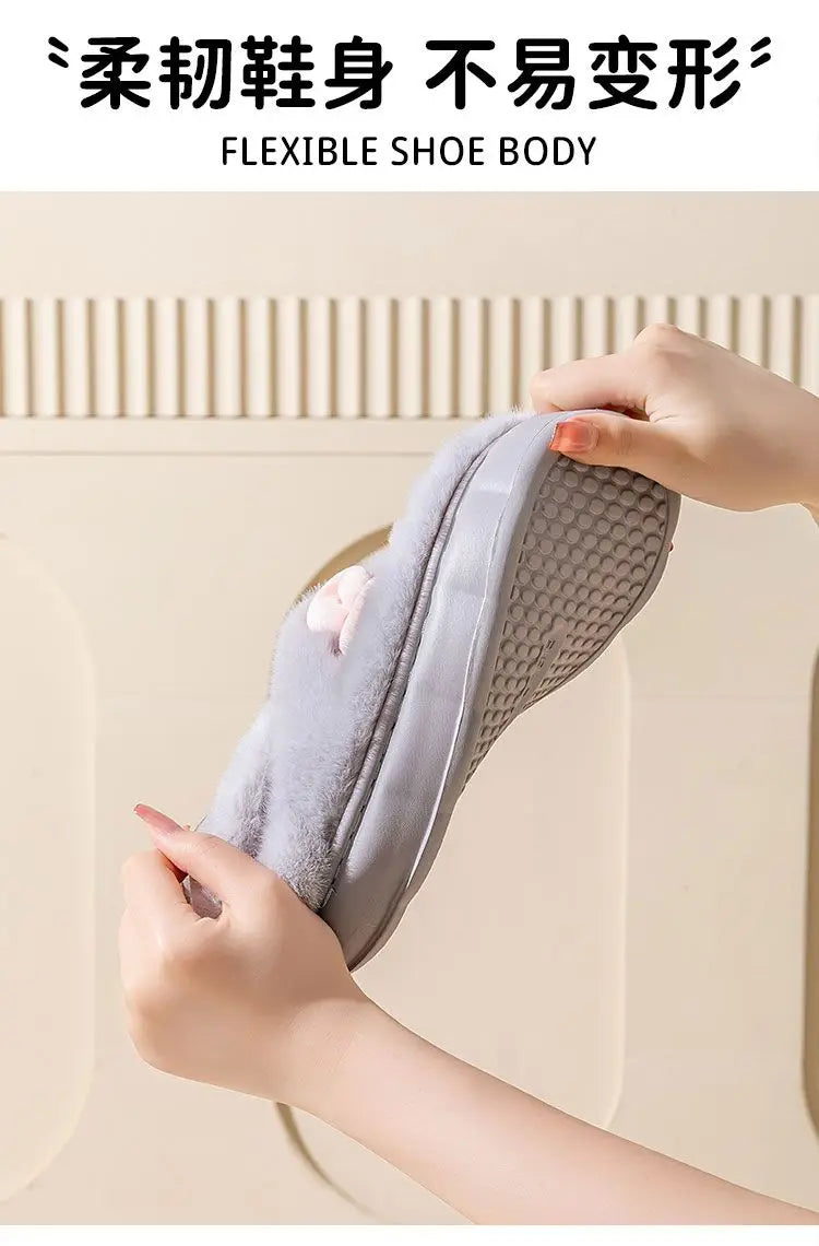 8 cm High platform fur slippers women's winter fluffy ear home shoes woman white bunny rabbit slippers woman house clog shoes