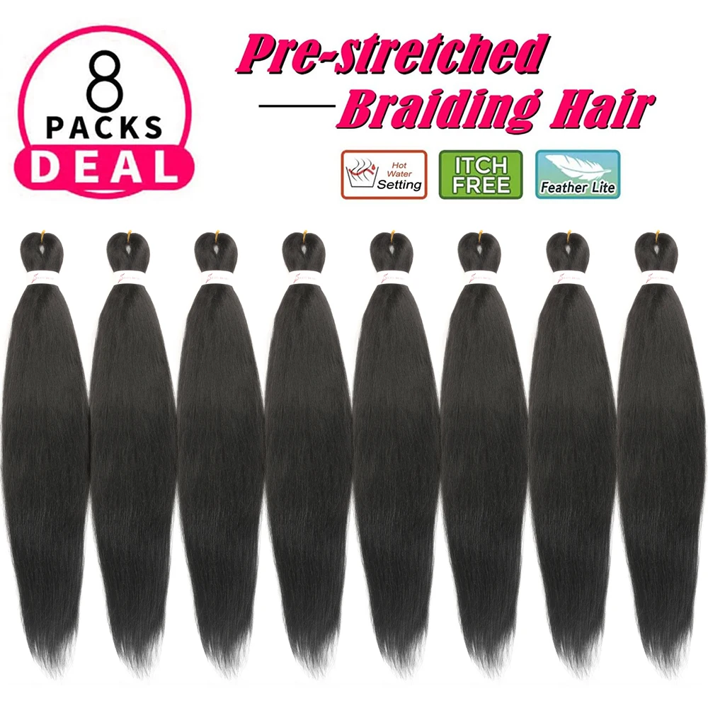8 Packs Pre Stretched Braiding Hair 30in/26in/20in Xpression Braids Extensions Black Color Synthetic Expression Hair for Braids