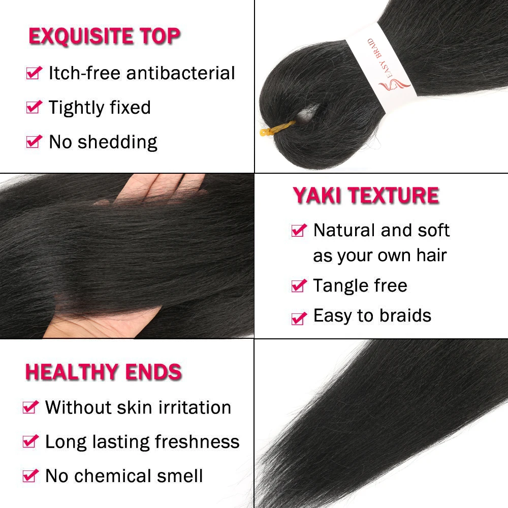 【Hair Material】: Pre Stretched Braiding Hair Made Of High Quality Low Temperature Flame-Retardant Synthetic Fiber. Yaki Texture, Natural Looking And Soft Touch As You Own Hair.