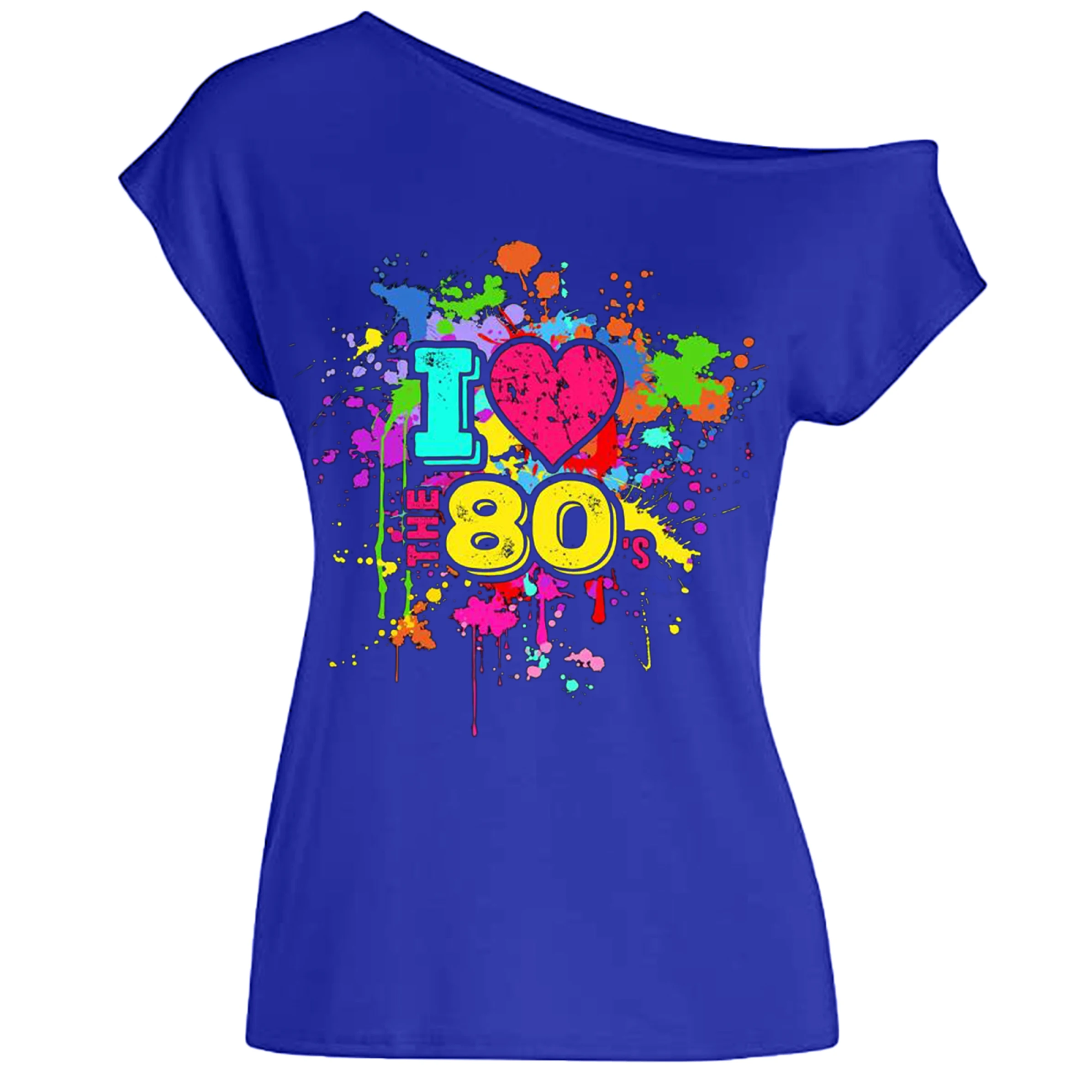 80s Costume Outfit for Woman Love off the Shoulder T Shirts Novelty Neon Top Clothes for Costume