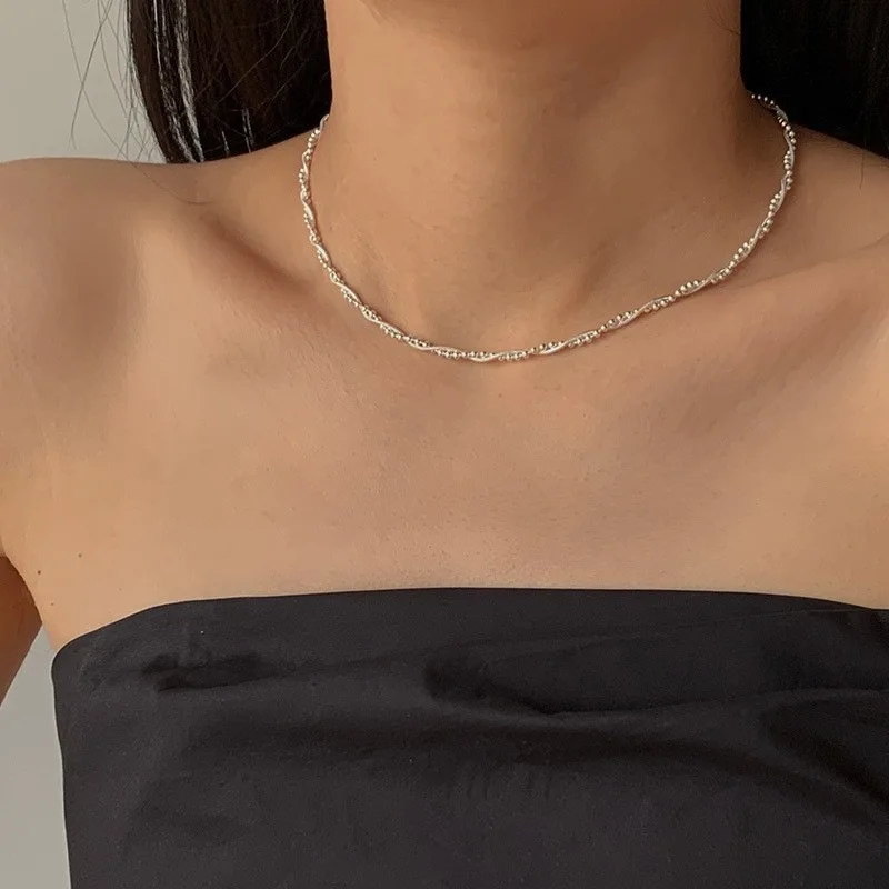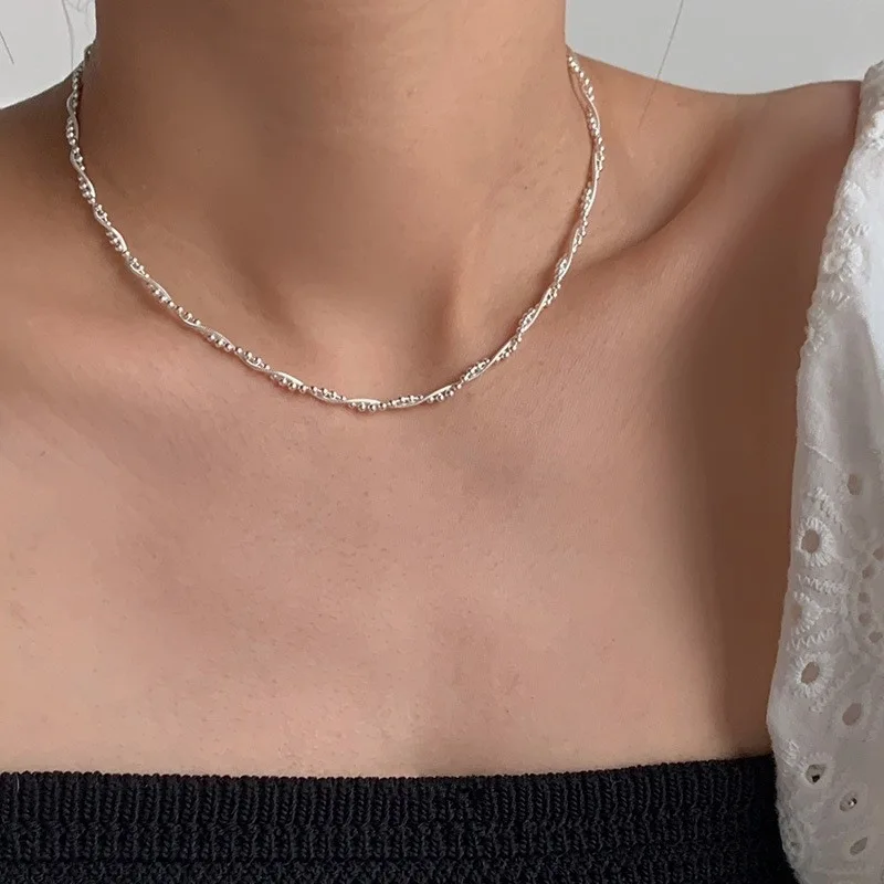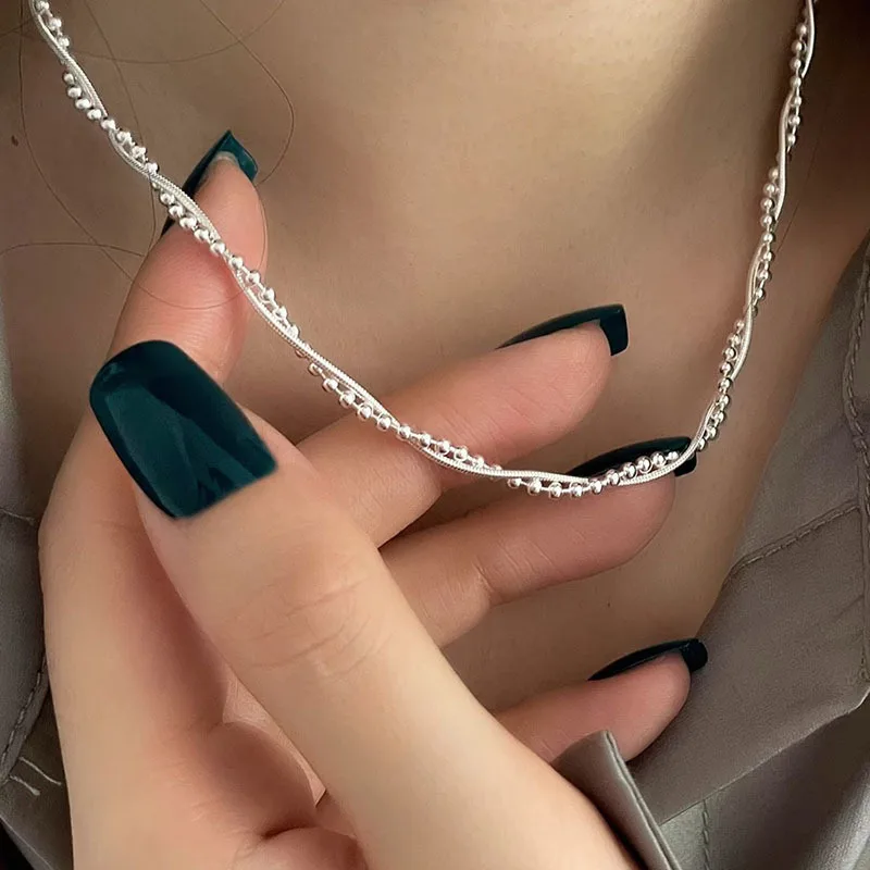 925 Sterling Silver Double Layer Snake Bone Chain Necklace for Women's Sweet Temperament Round Bear Neckchain Fashion Jewelry
