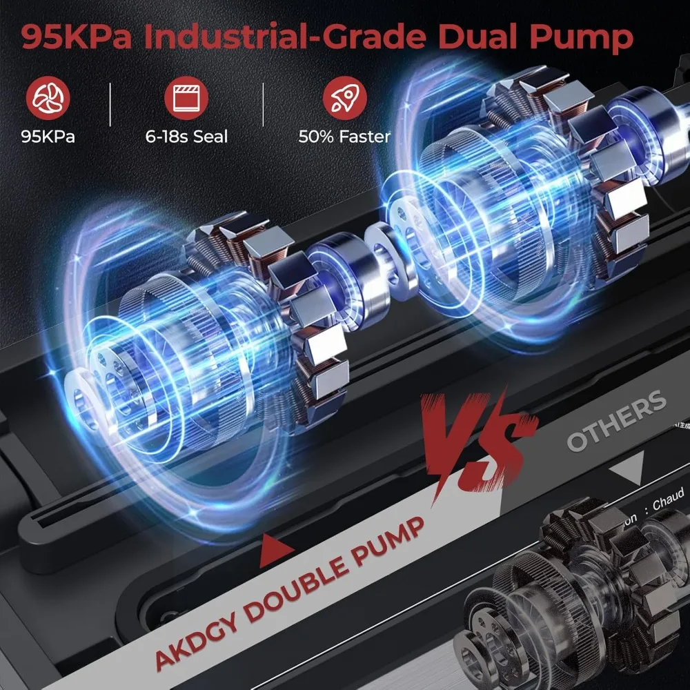 Commercial-Grade Performance: 95Kpa Liquid Vacuum Sealer Machine features professional suction strength, 20 L/min vacuum speed and 6-18s sealing time for optimal performance. 200+ continuous seals without overheating. vacuum pumps to maximum air extraction when sealing larger foods