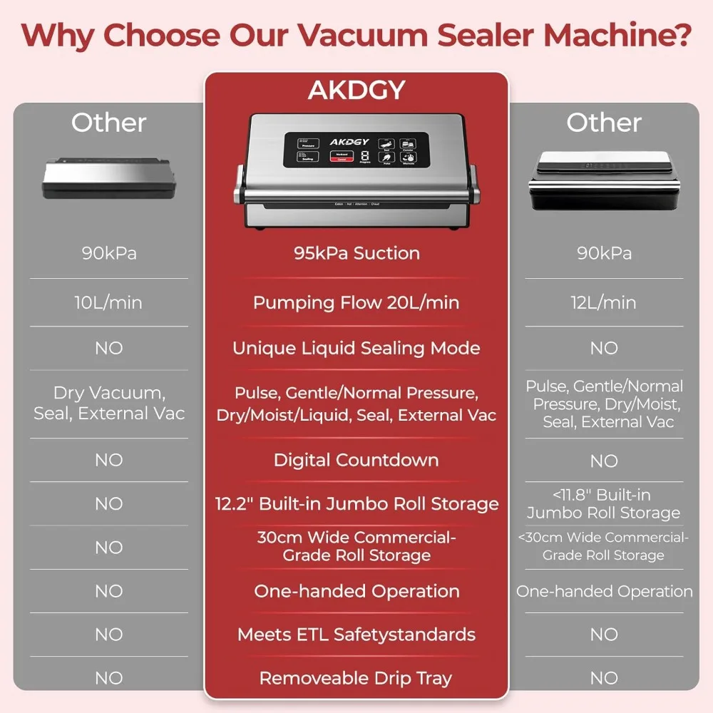 95Kpa Liquid Vacuum Sealer Machine, Full Automatic Food Sealer for Dry/Liquid/Moist Foods Strong Suction Digital Timer