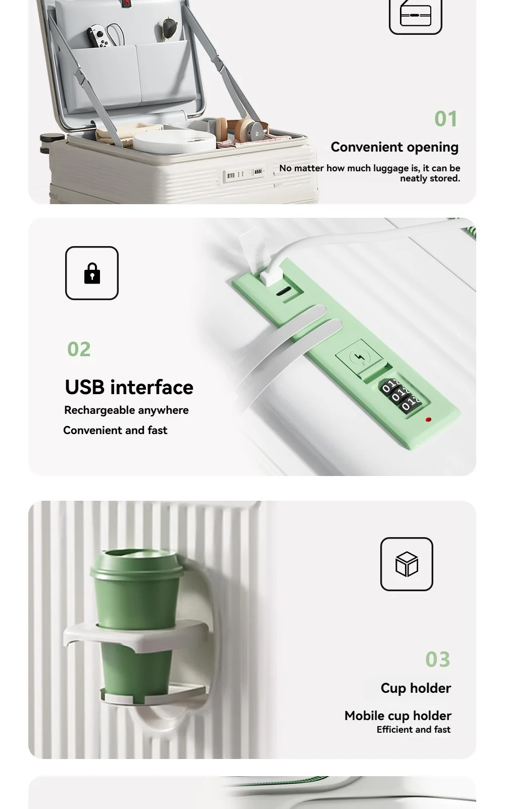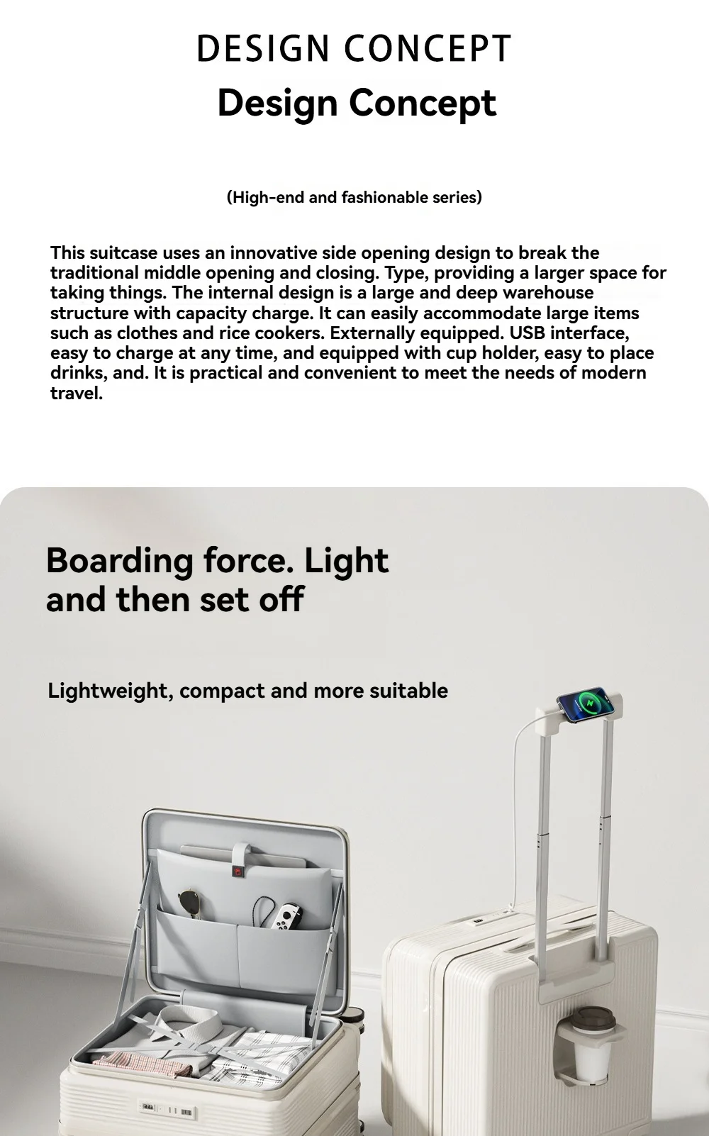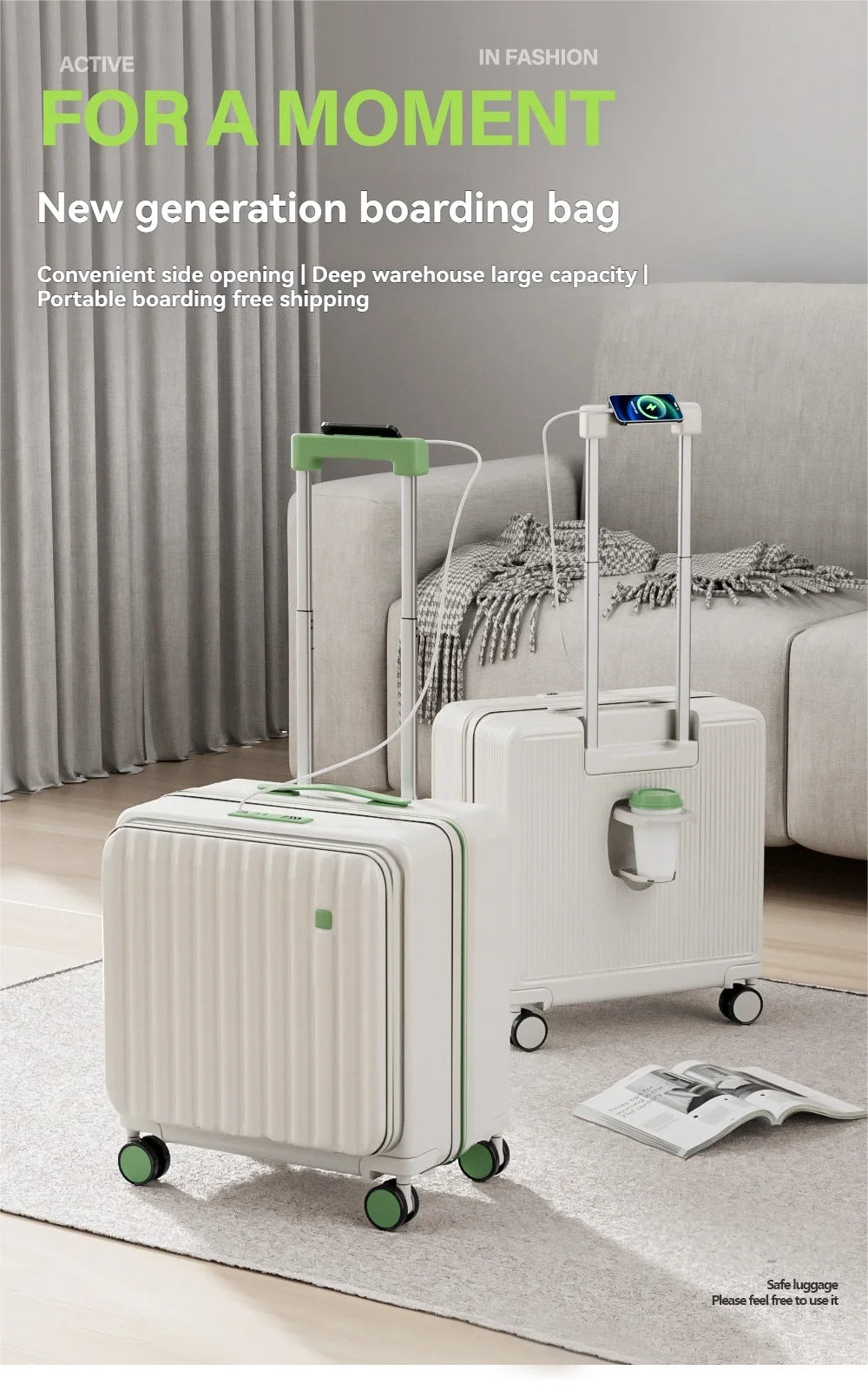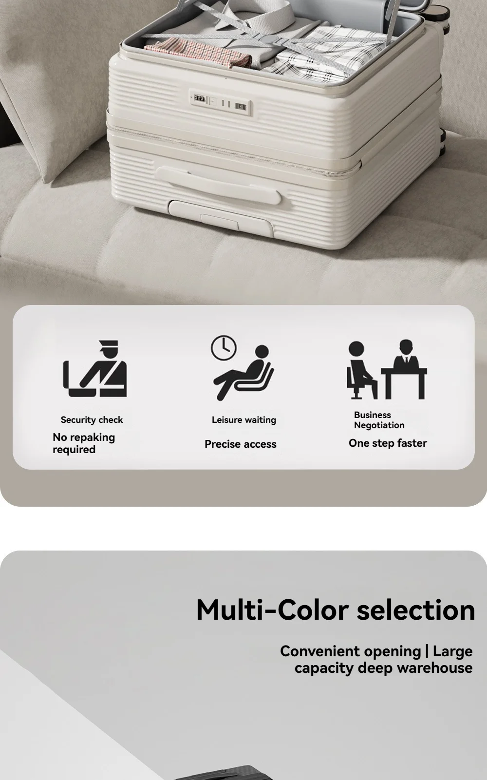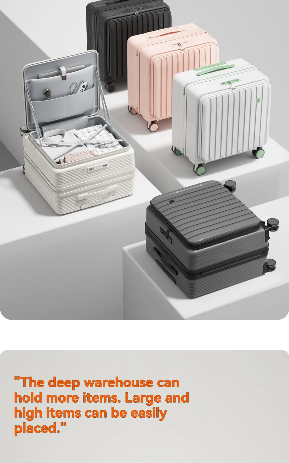 A multi-functional small deep-compartment front-opening suitcase for both men and women, an 18-inch travel bag for boarding
