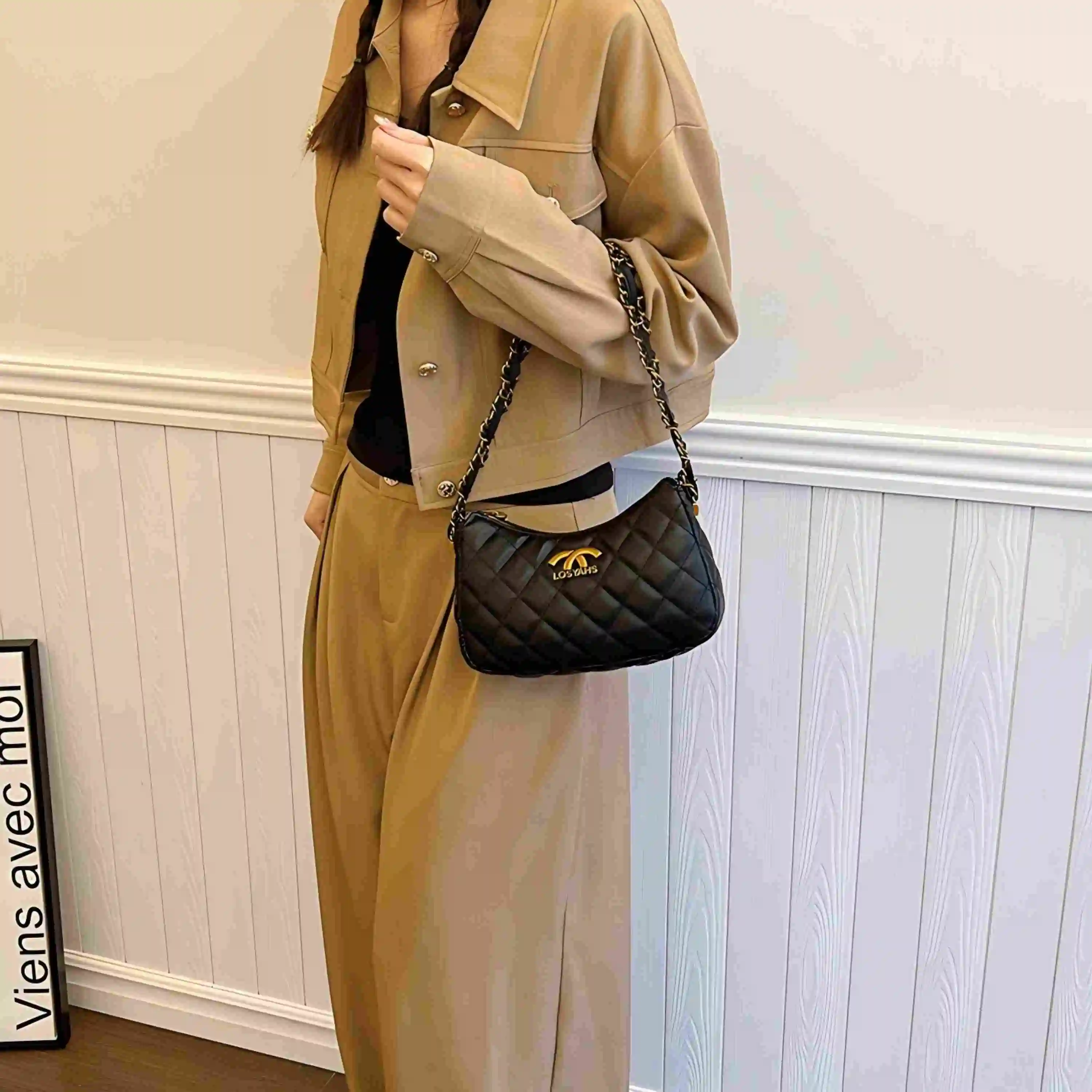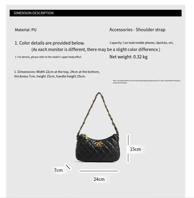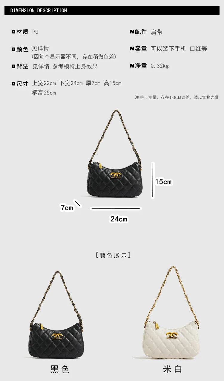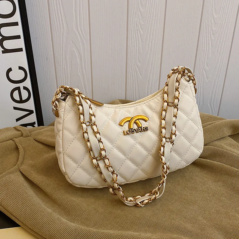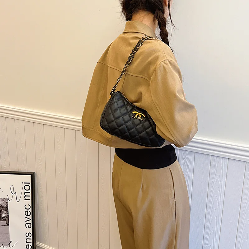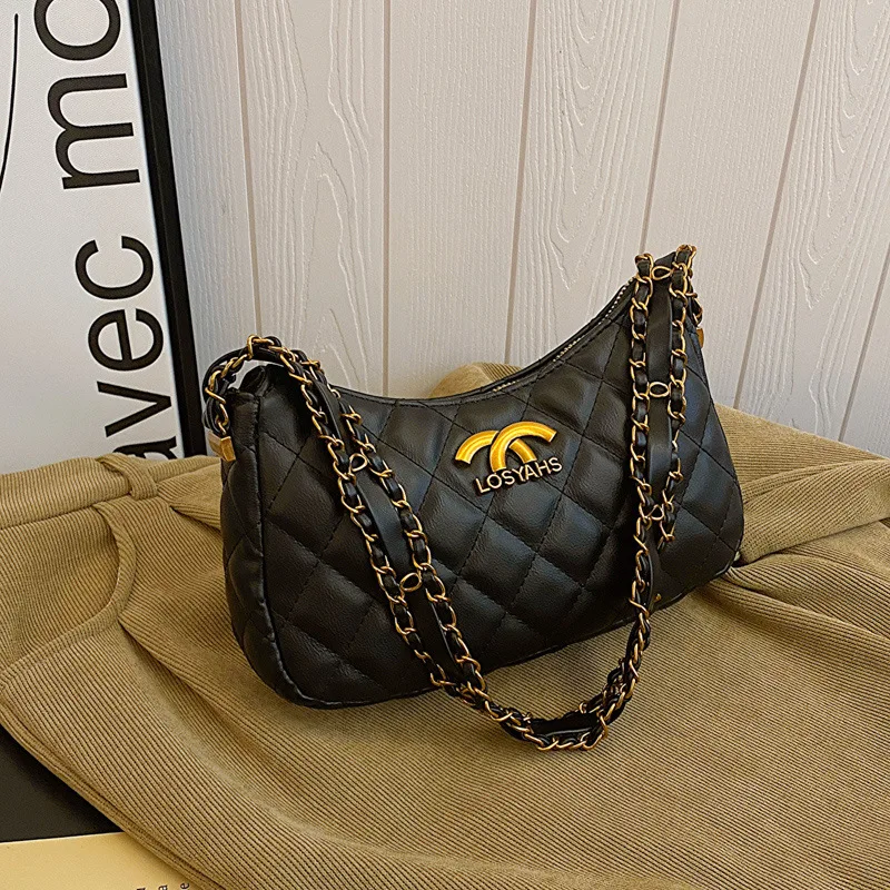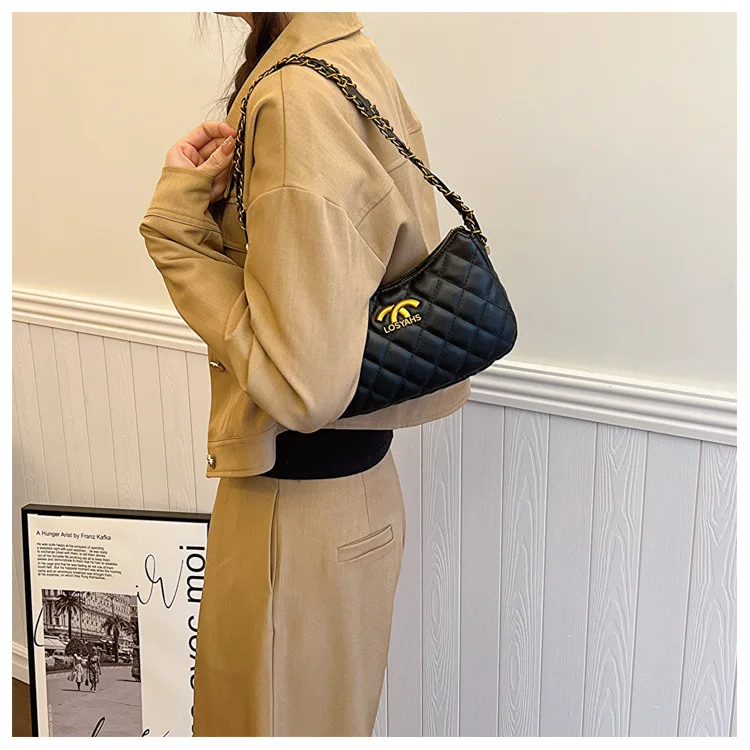 Advanced texture diamond grid small bag for women's 2025 autumn and winter new retro light luxury chain shoulder armpit bag