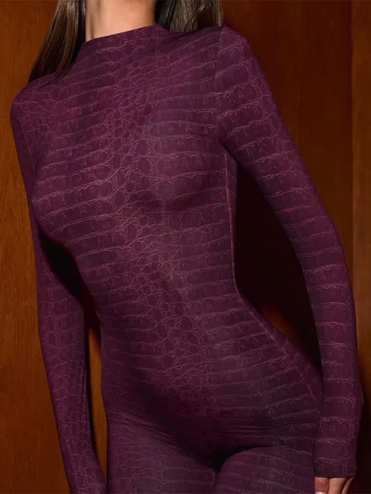 Ahagaga Sexy Club Women's Jumpsuits Serpentine Turtleneck Regular Long Sleeves Sheath Skinny Print Casual Streetwear Rompers
