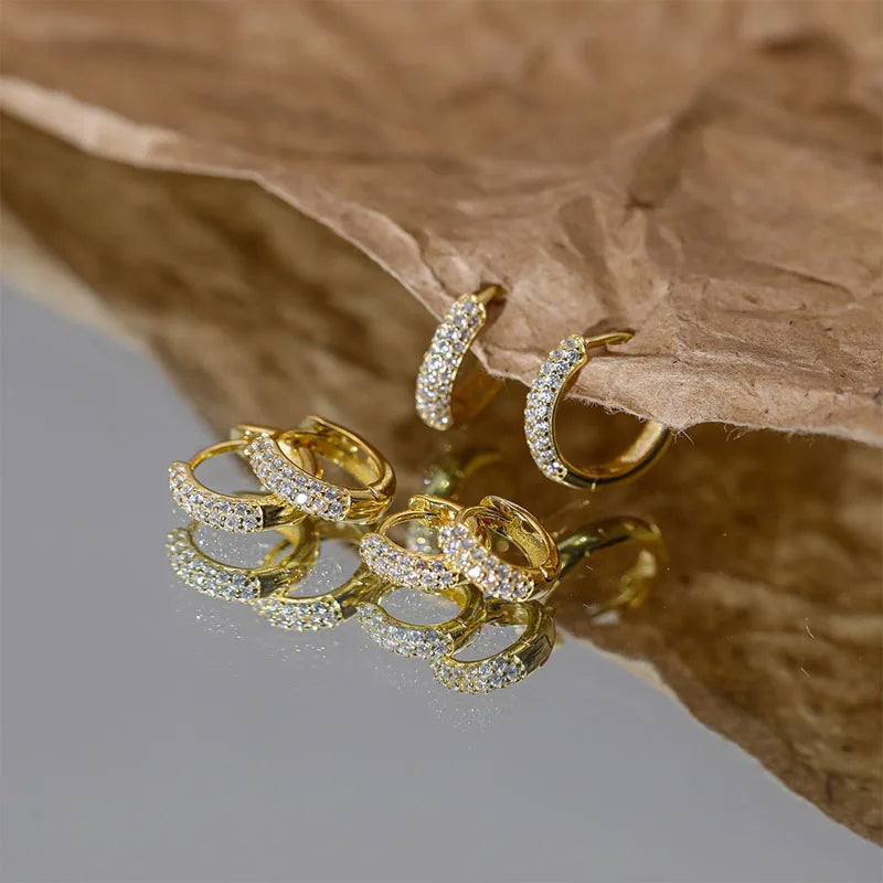 Aide 925 Sterling Silver Pave White CZ Stone Thick Hoop Earrings For Women Minimalist Mini Cartilage Chunky Earring Hoops Gift