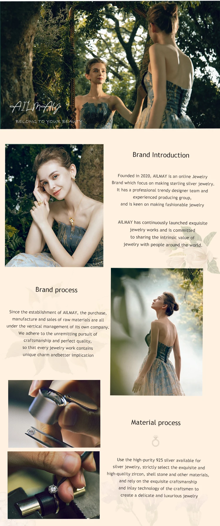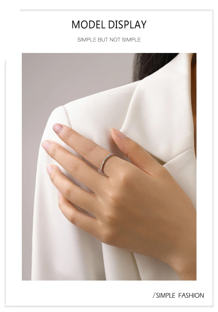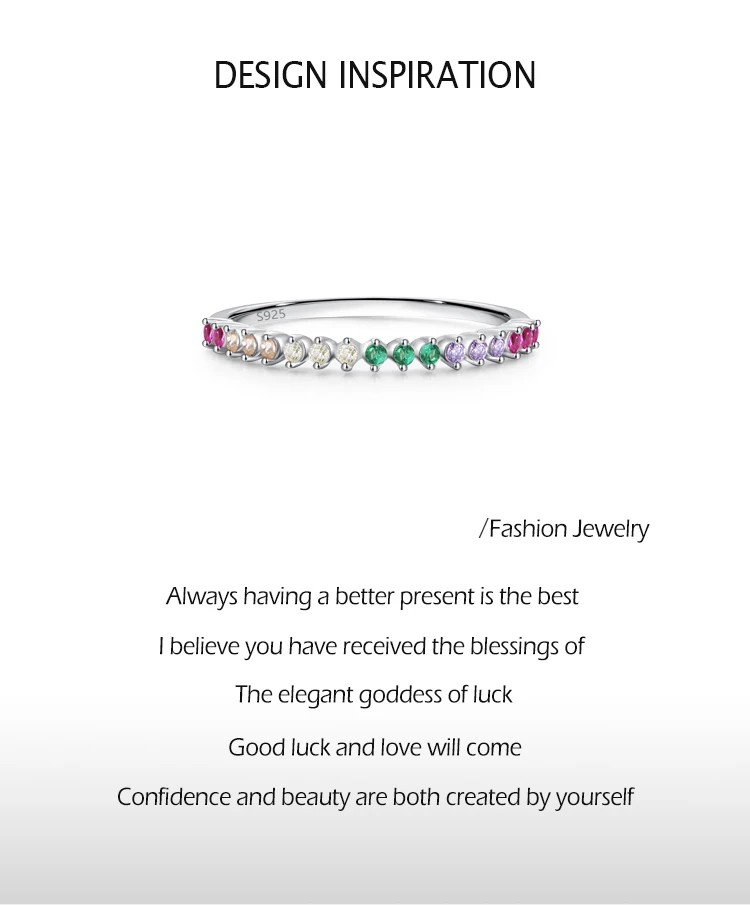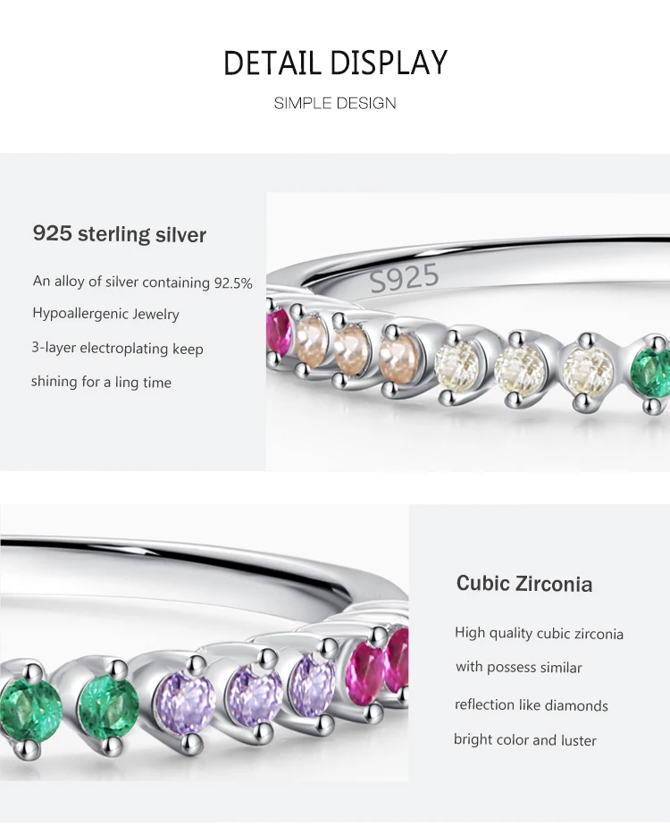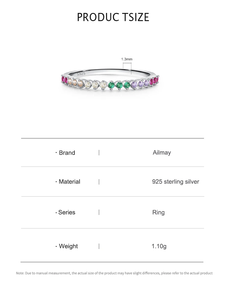 Ailmay 925 Sterling Silver Fashion Colorful Round Zirconia Stackable Finger Ring For Women Elegant Wedding Accessories Jewelry