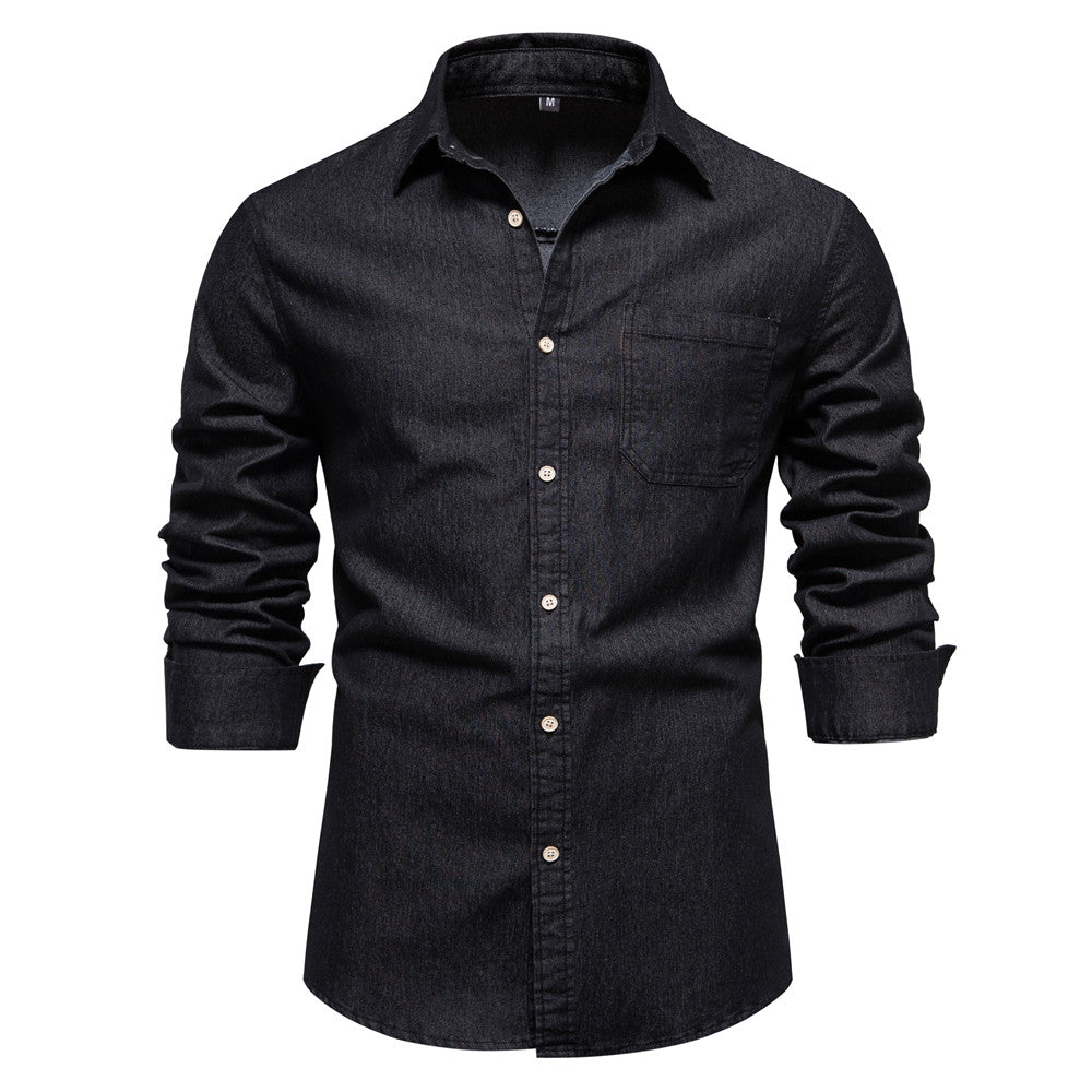 AIOPESON Autumn New Cotton Men's Denim Shirt Solid Color Single Pocket Casual Long Sleeve Shirt Autumn Jeans Shirt for Men