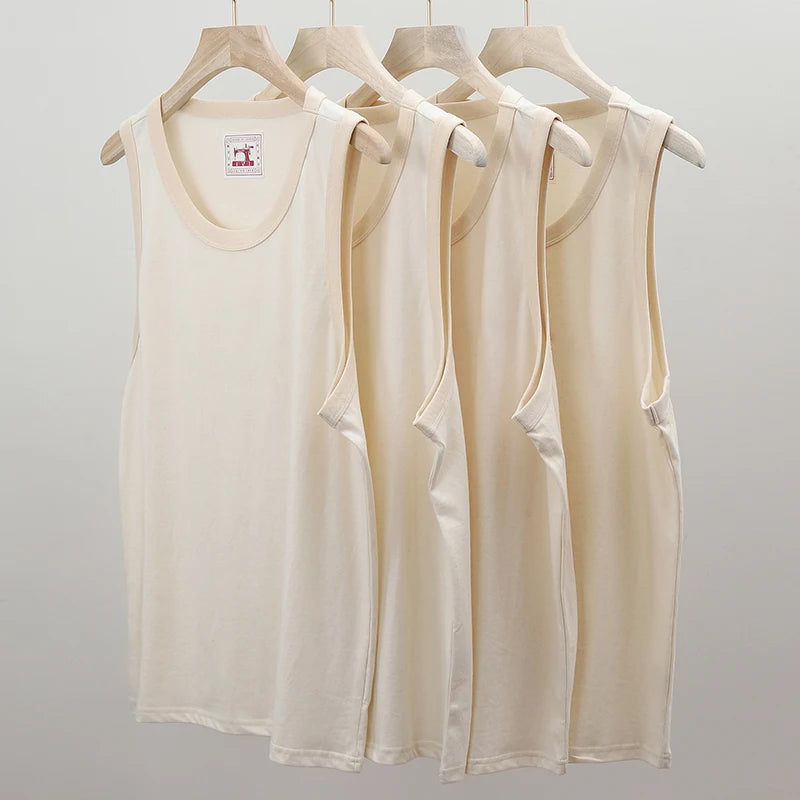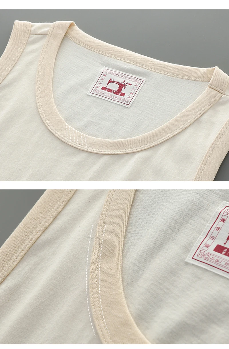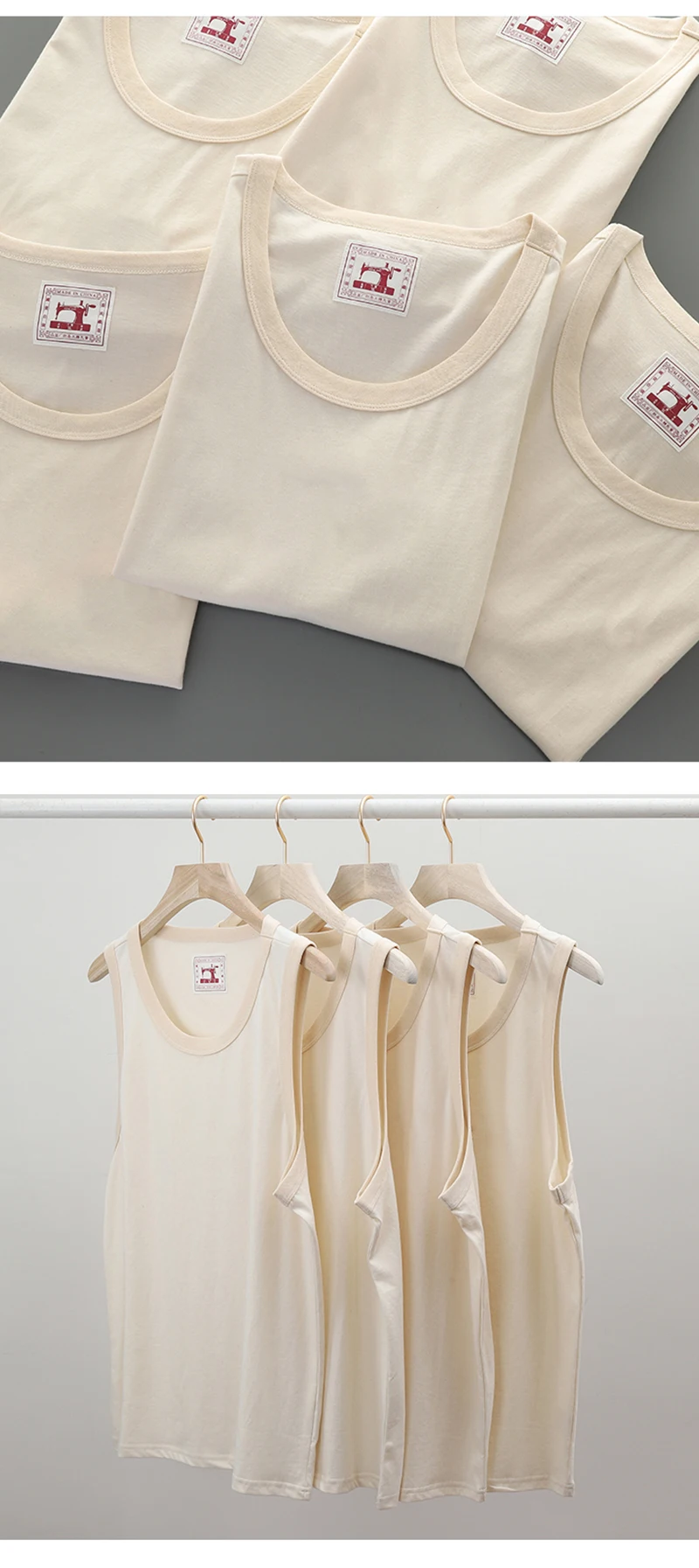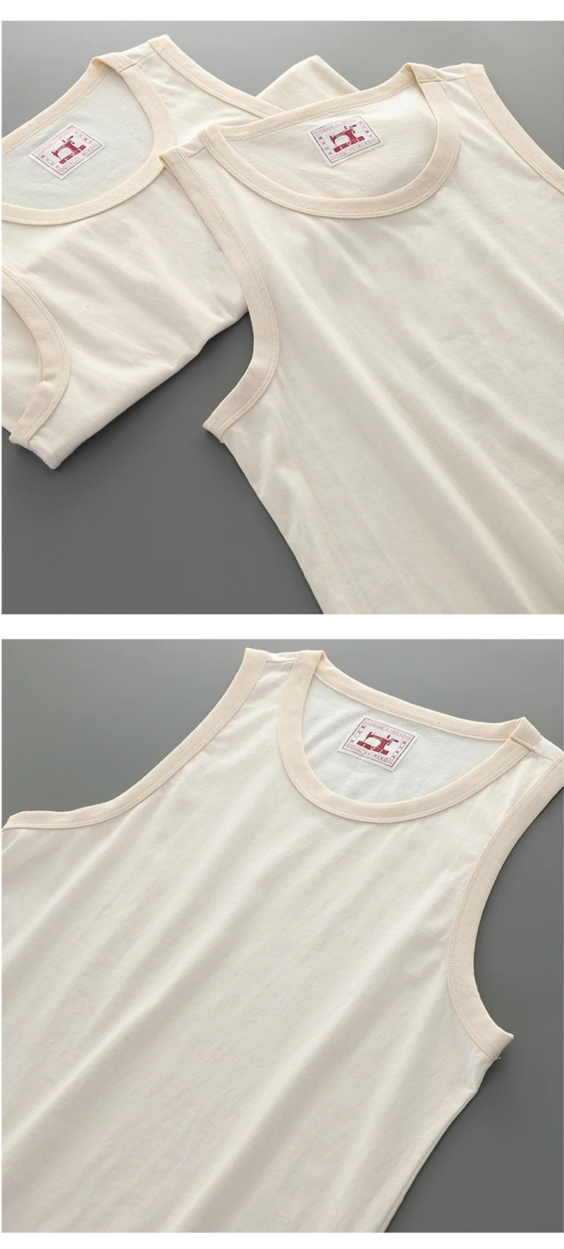 Akkad Kuti Japanese Retro Casual Tank Top Men Heavyweight Cotton Embryo Color Tops Male Teens Sleeveless Vest Spring Summer 2021