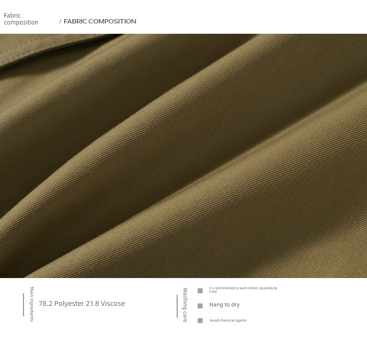 Material composition: Polyester fibers 78.2% Viscose fibers 21.8%