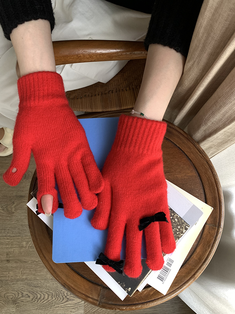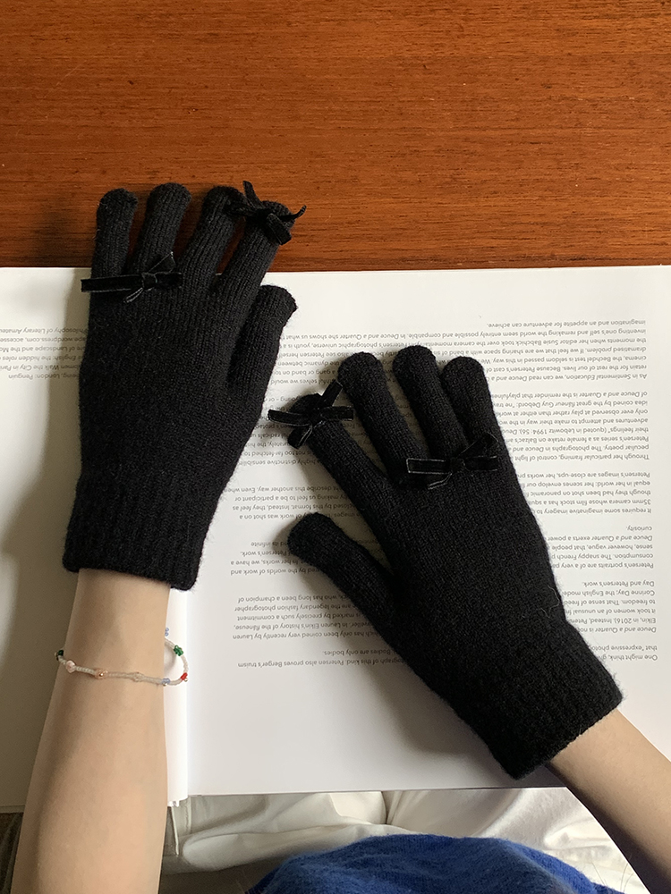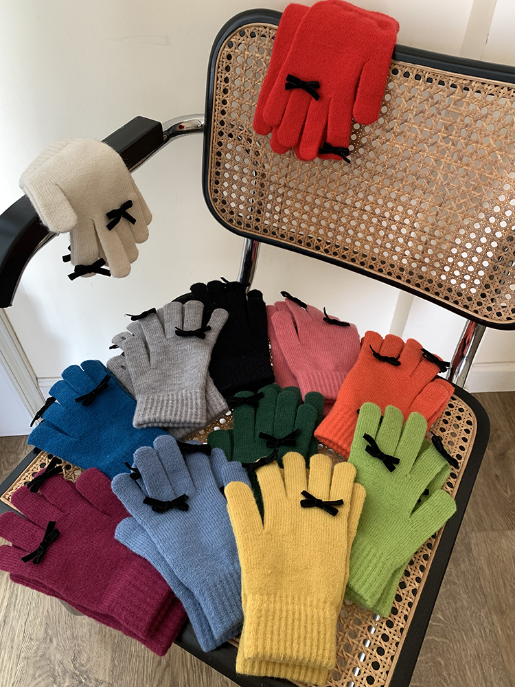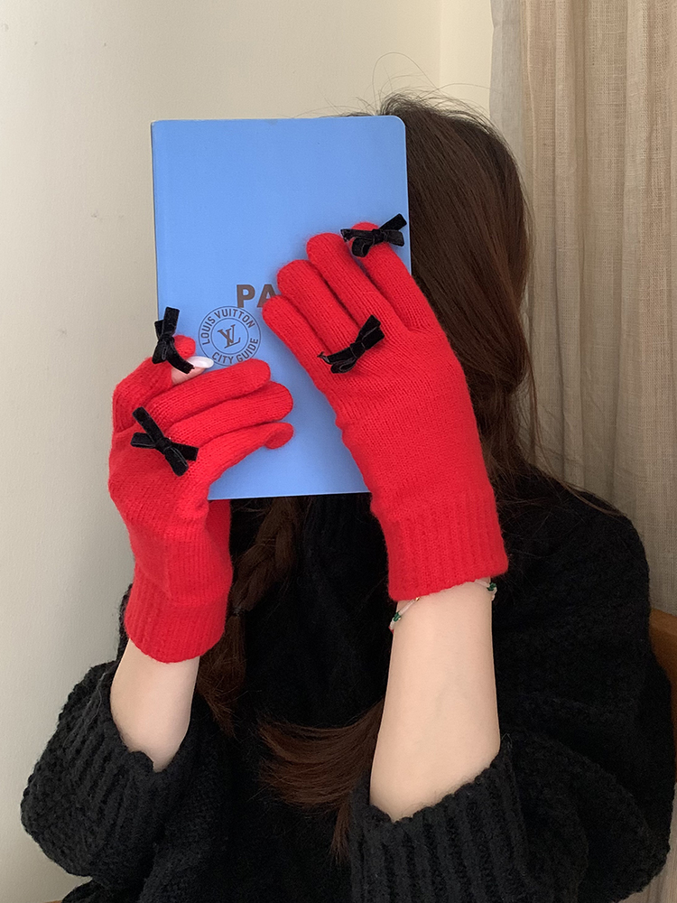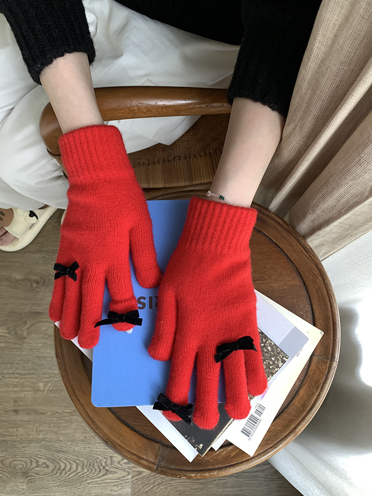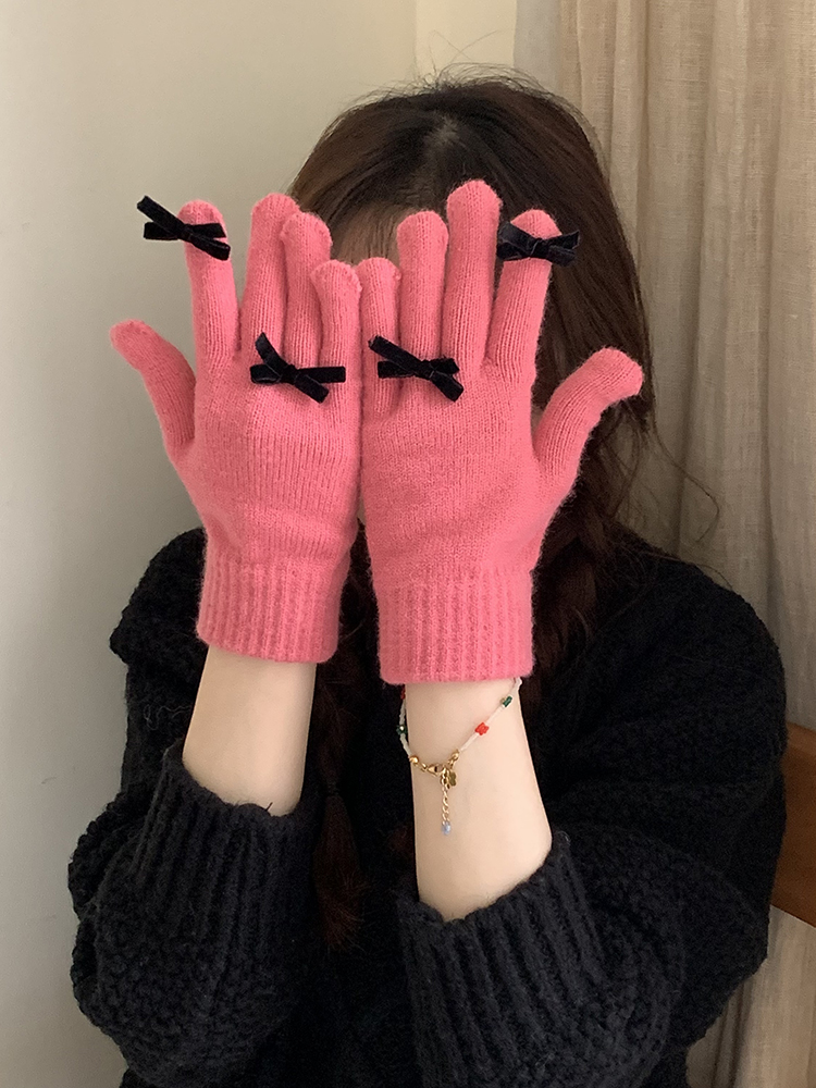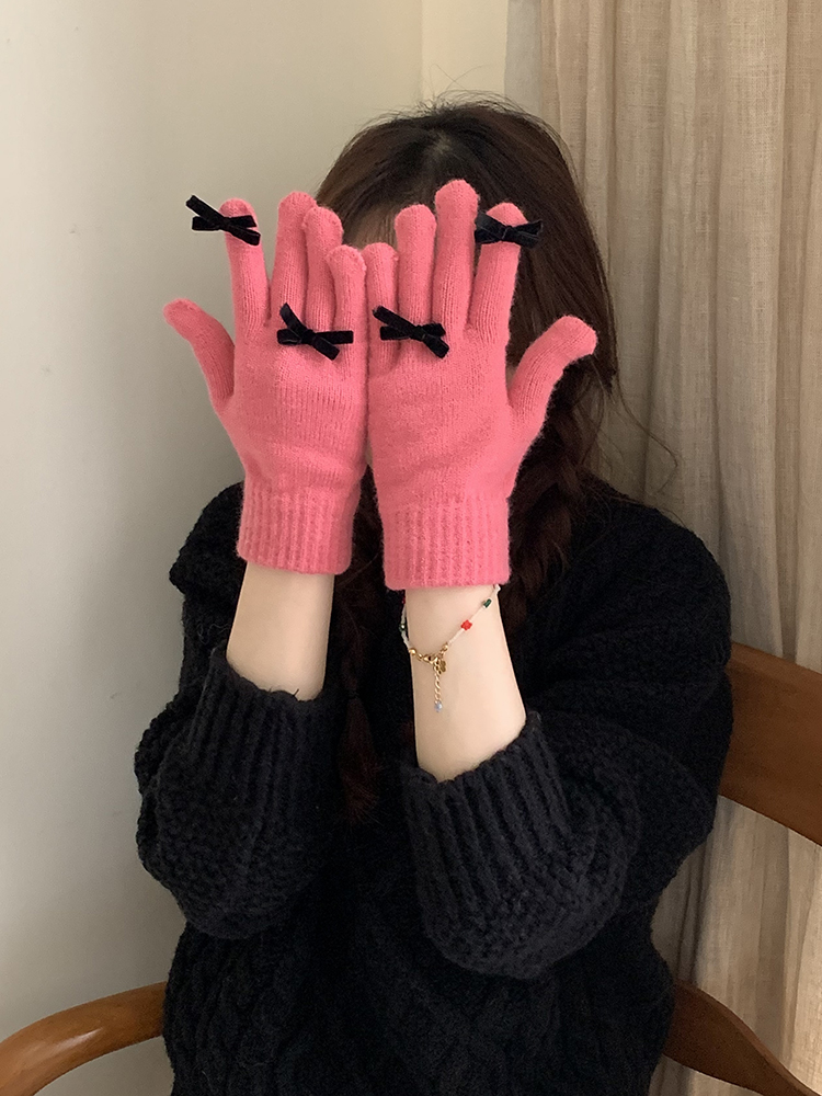 South Korea Cute Ins Style Women's Five-Finger Gloves Bow