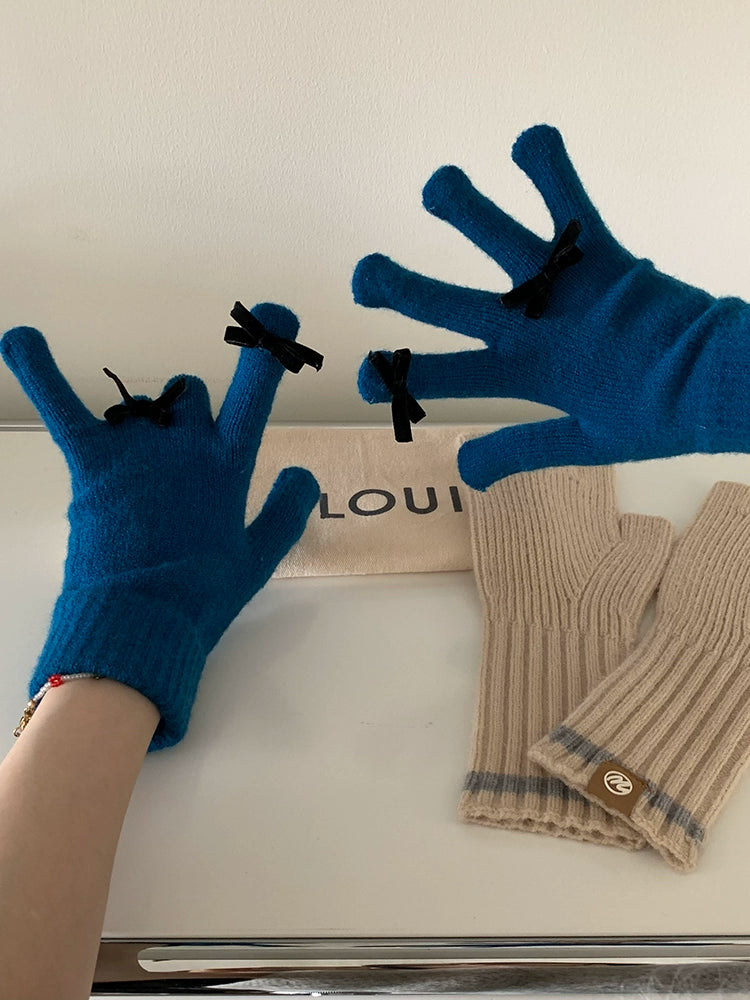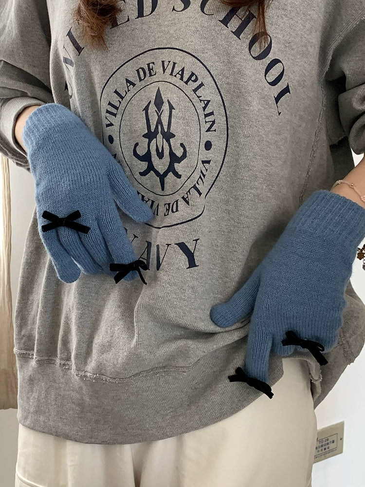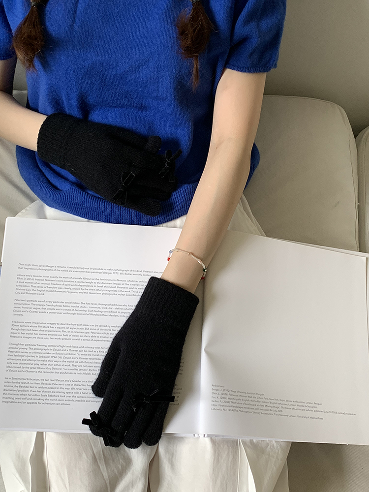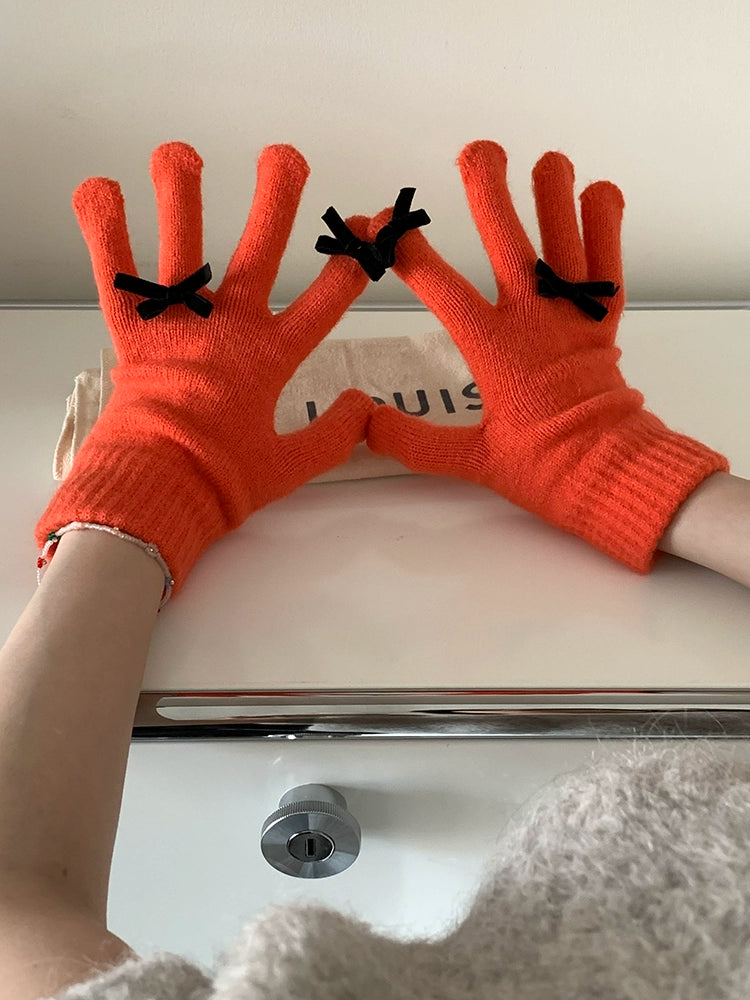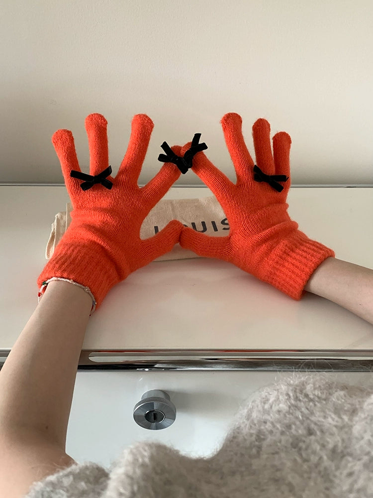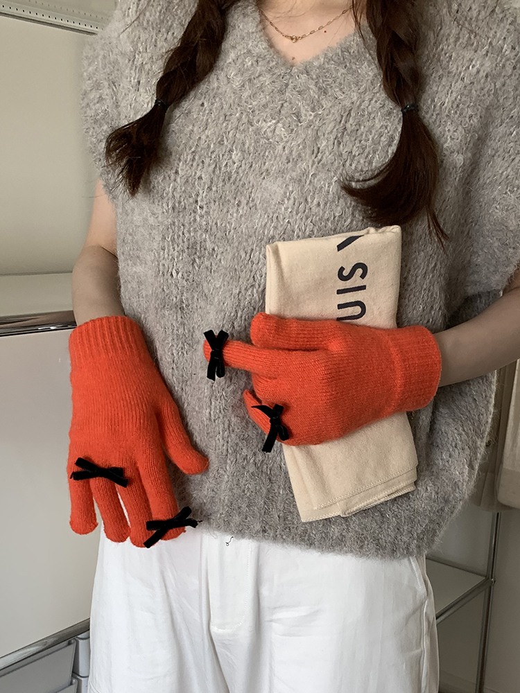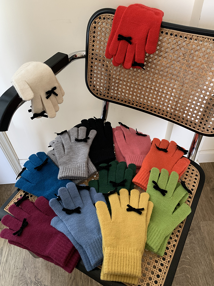 South Korea Cute Ins Style Women's Five-Finger Gloves Bow