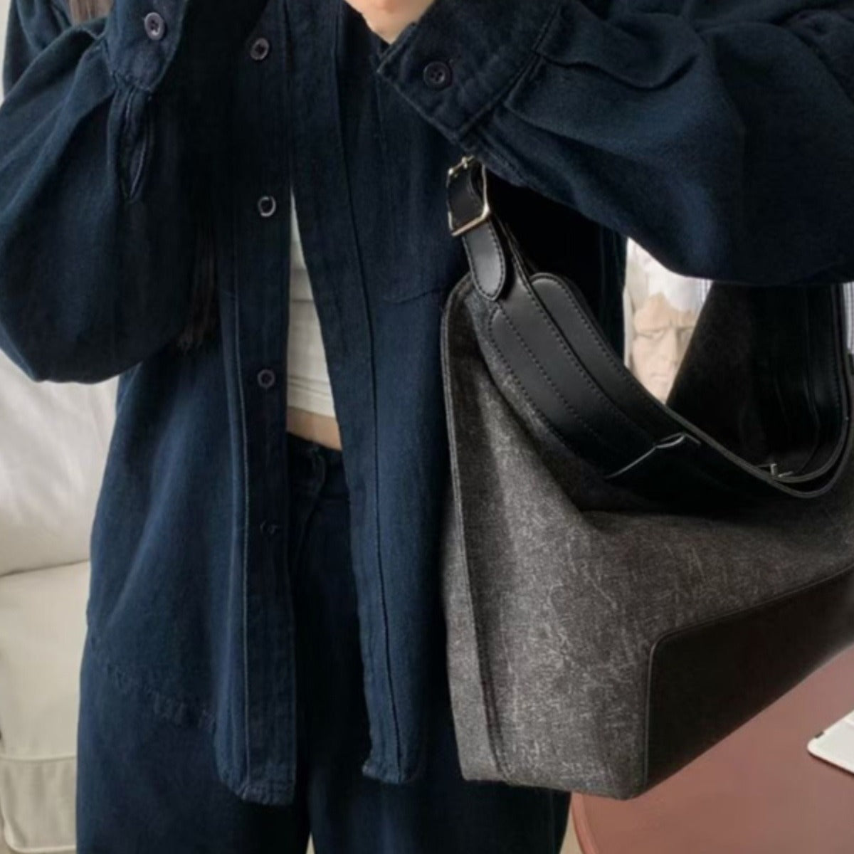 Special-interest Design Leopard Print Hot Girl Retro Canvas Leather Patchwork