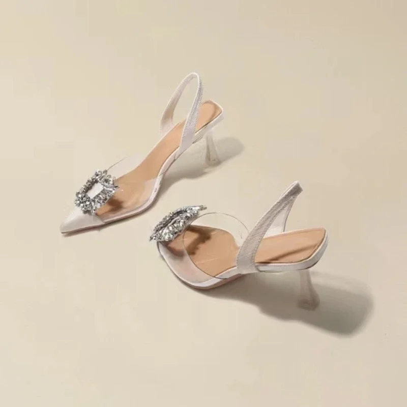 Spring and Autumn Fashion New Sexy Banquet Comfortable Crystal Transparent Solid Color Pointed Toe Women's High Heels