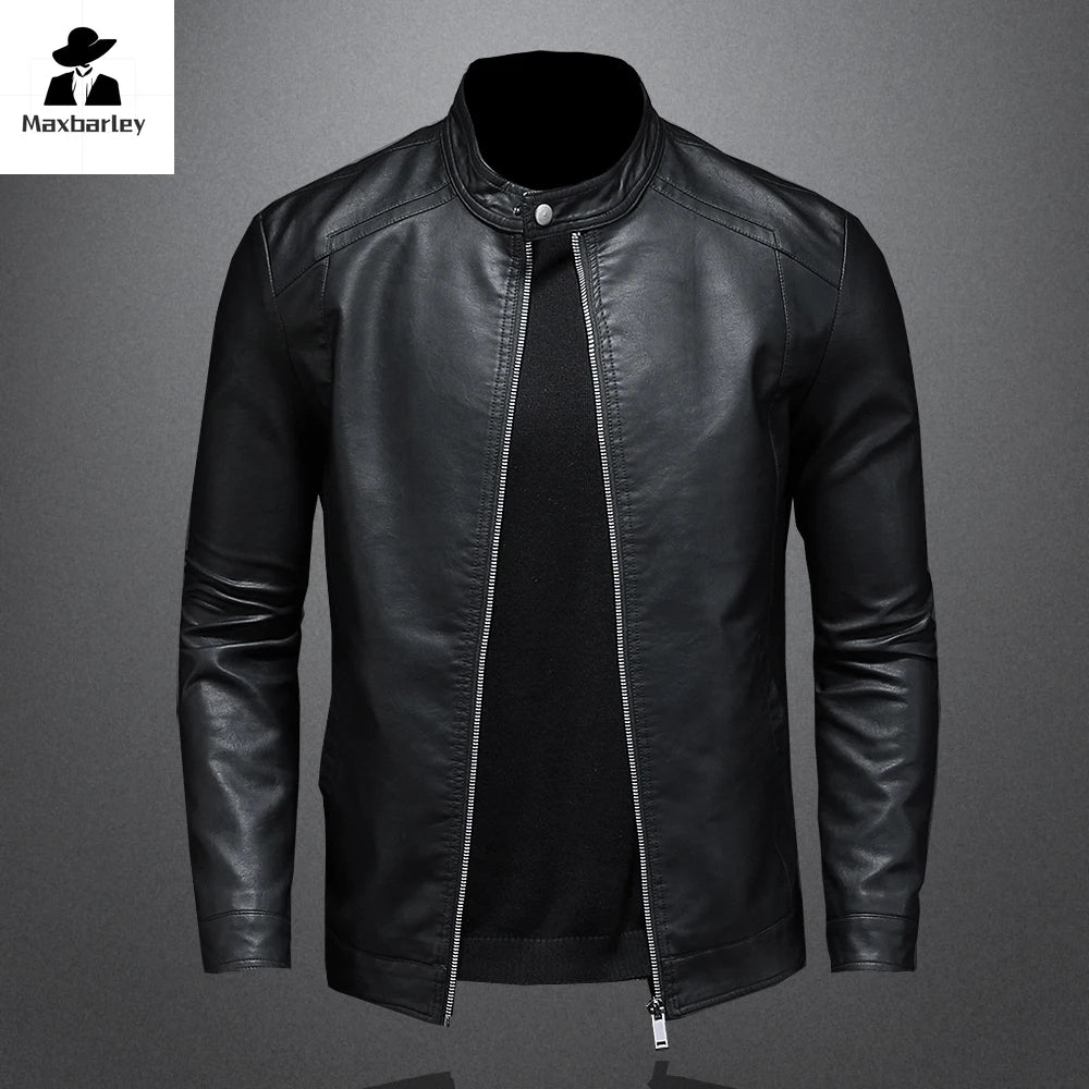 Spring Autumn Leather Jacket Men Stand Collar Slim Pu Leather Jacket Fashion Motorcycle Causal Coat Mens Moto Biker Leather Coat