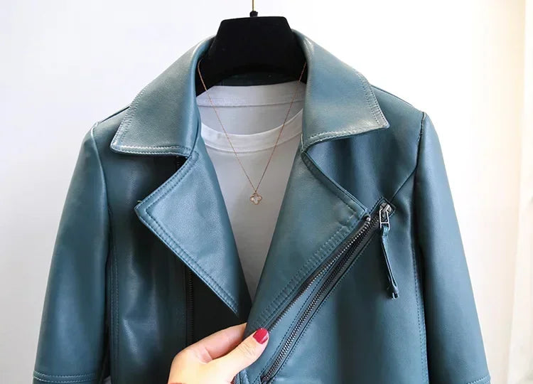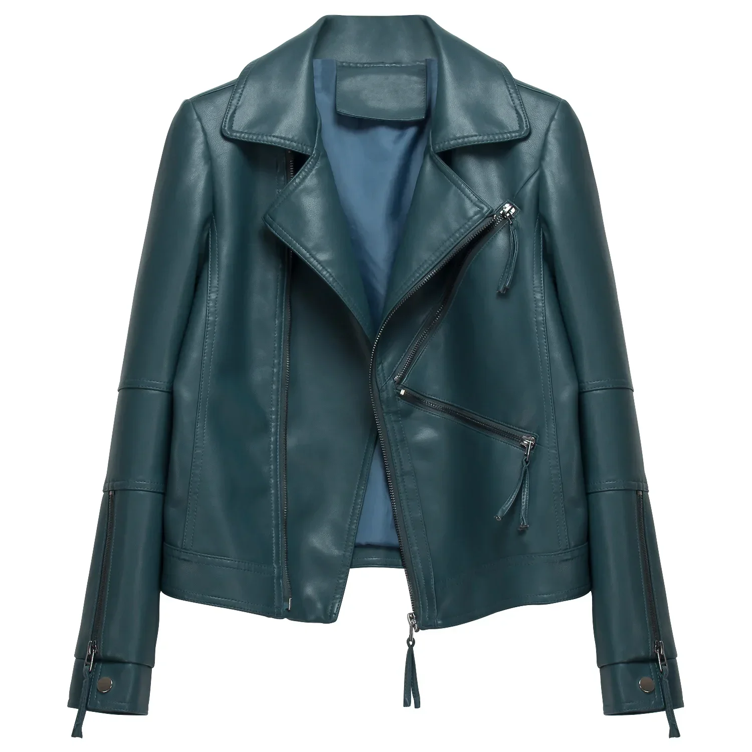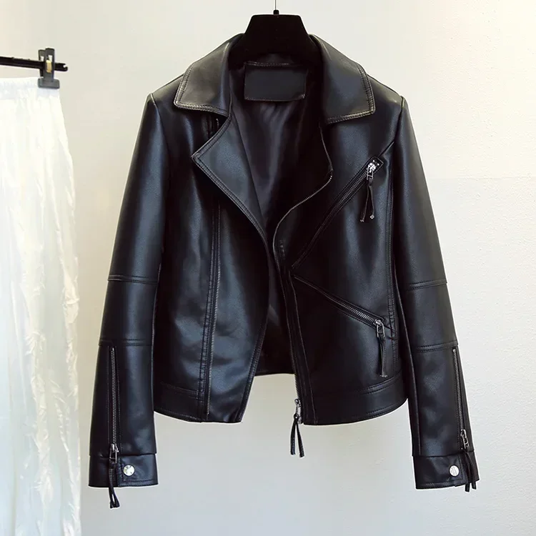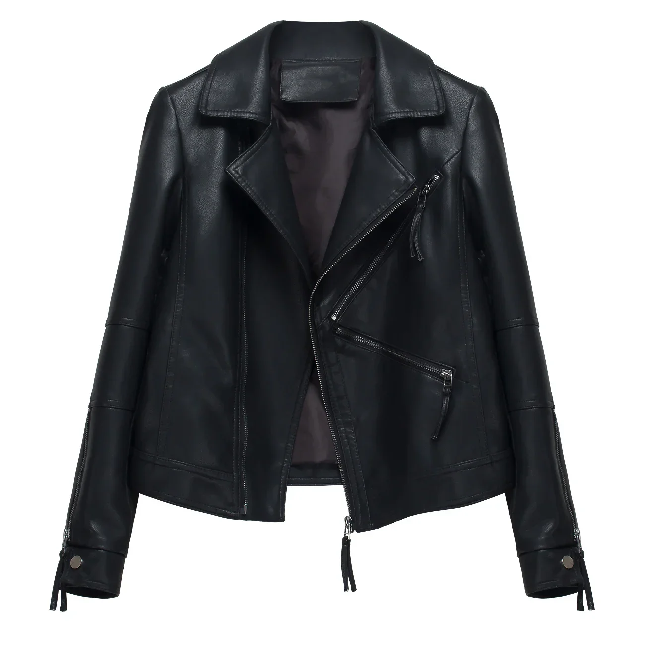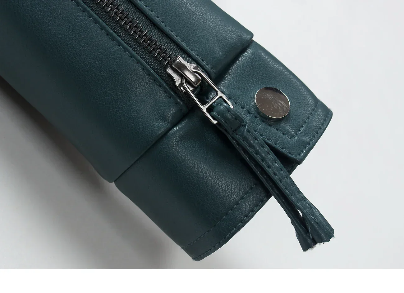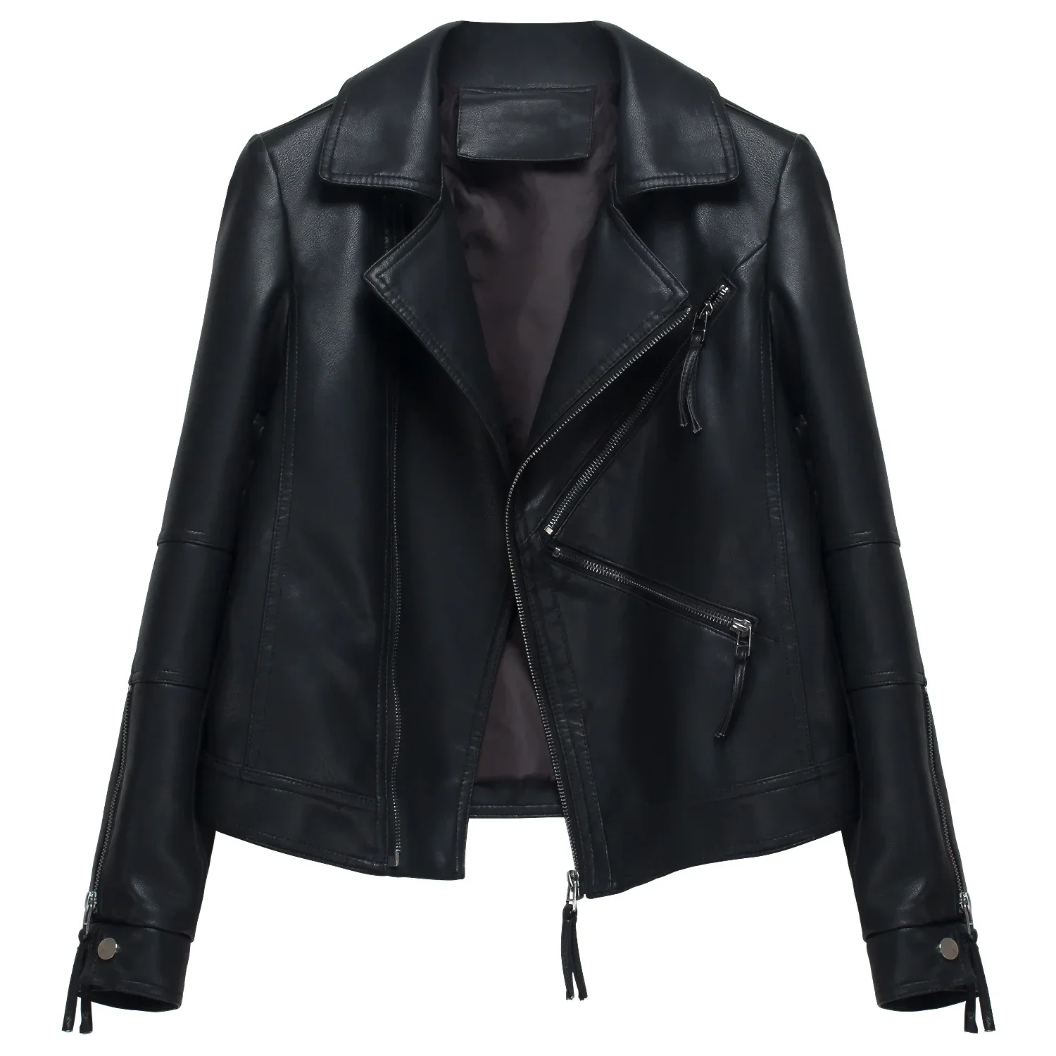 Spring Autumn Vintage Faux Leather Jacket Women Brown Moto Biker Leather Coats Casual Street Wear Zipper PU Basic Outwear