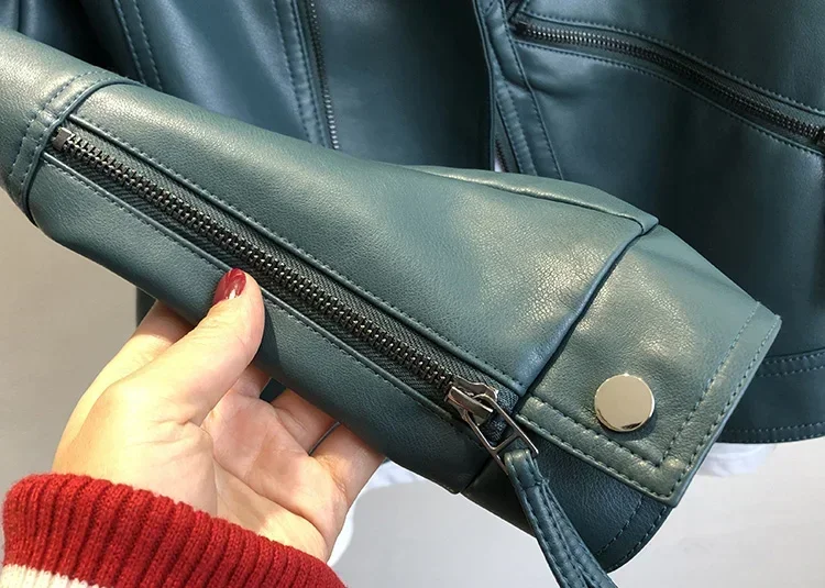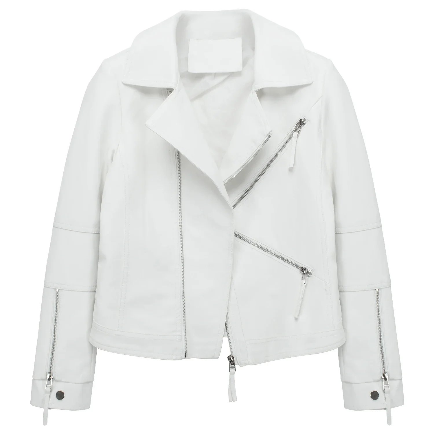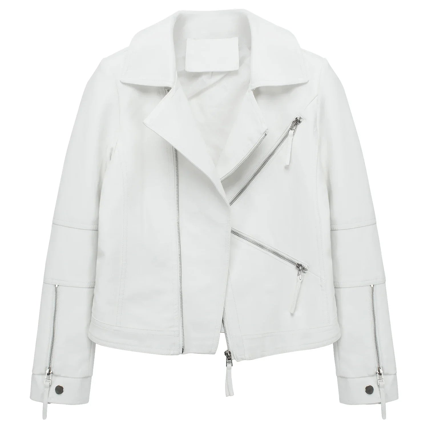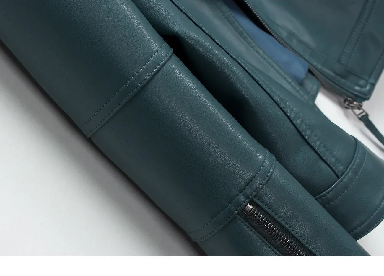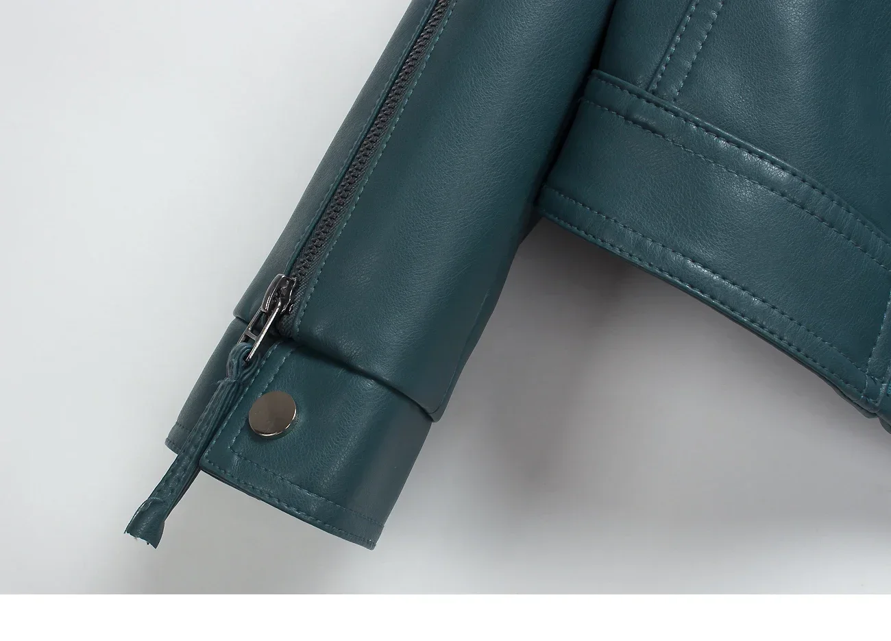 Spring Autumn Vintage Faux Leather Jacket Women Brown Moto Biker Leather Coats Casual Street Wear Zipper PU Basic Outwear