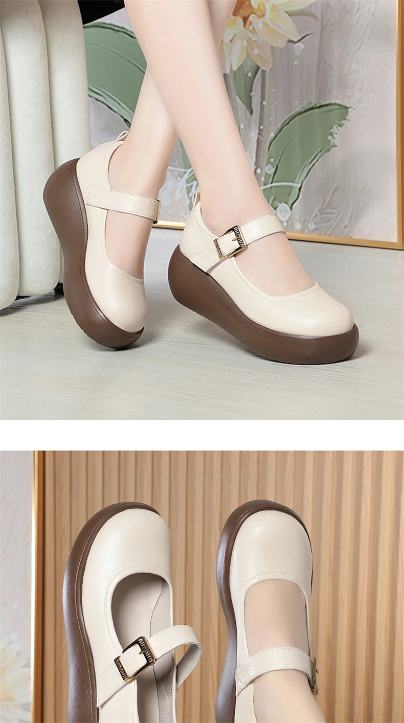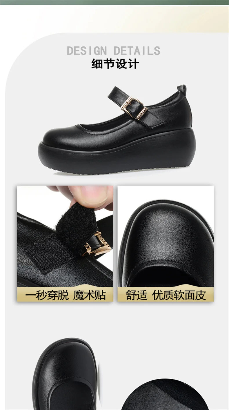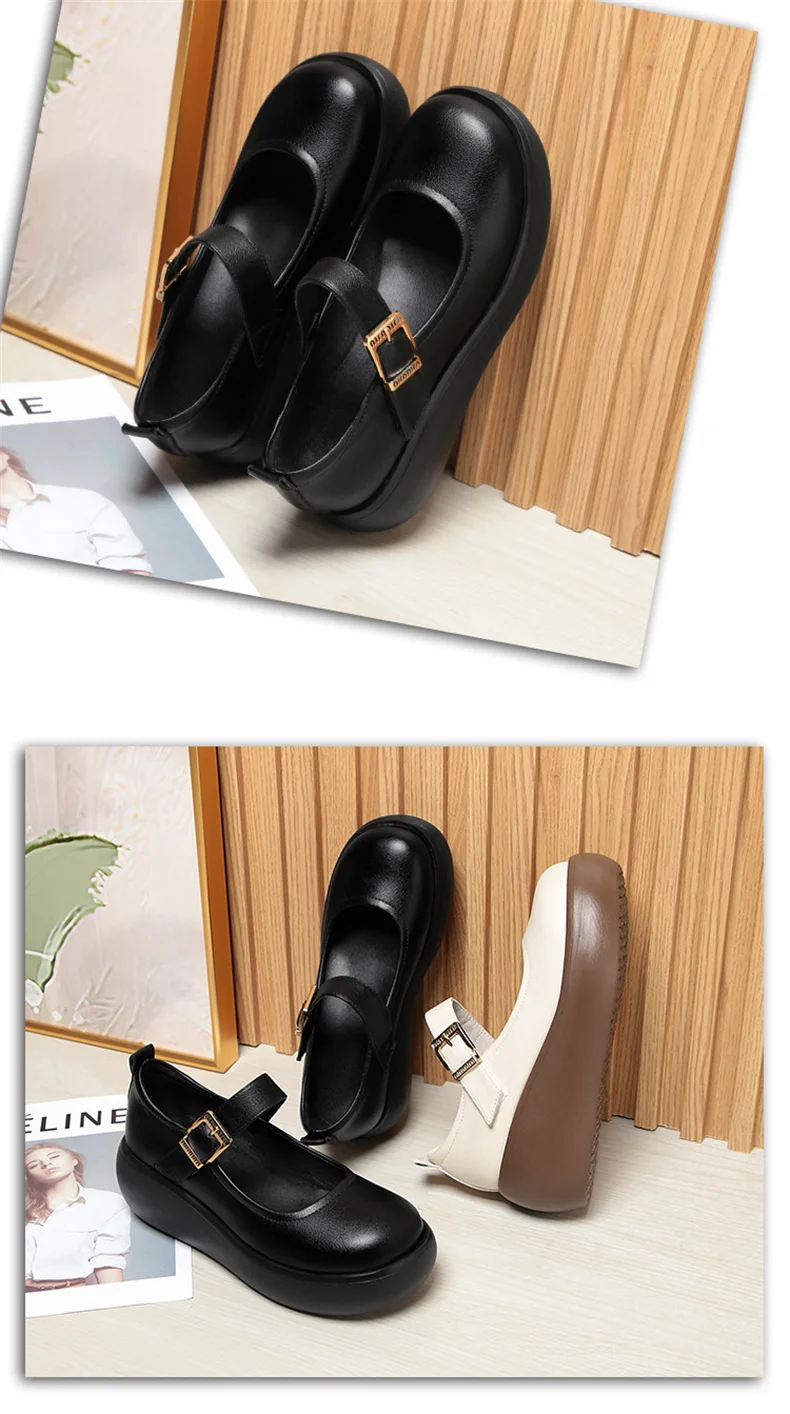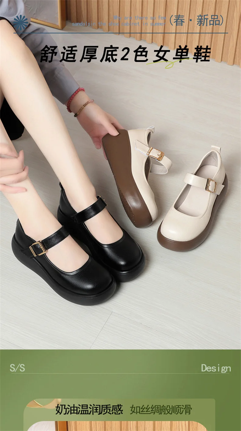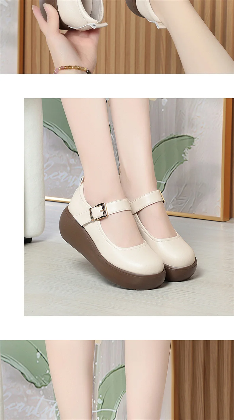 Spring Fashion Wedge Round Toe Soft Bottom Lolita Shoes Women Cute Vintage Mary Jane Shoes Chunky College Student Shoes