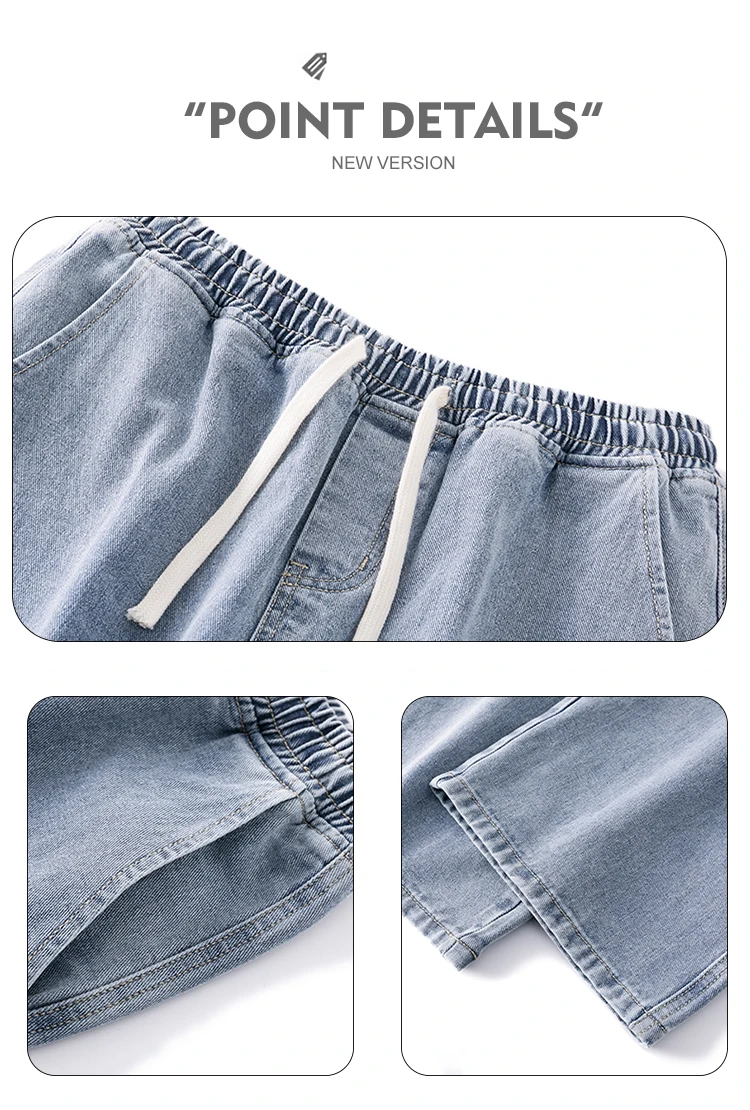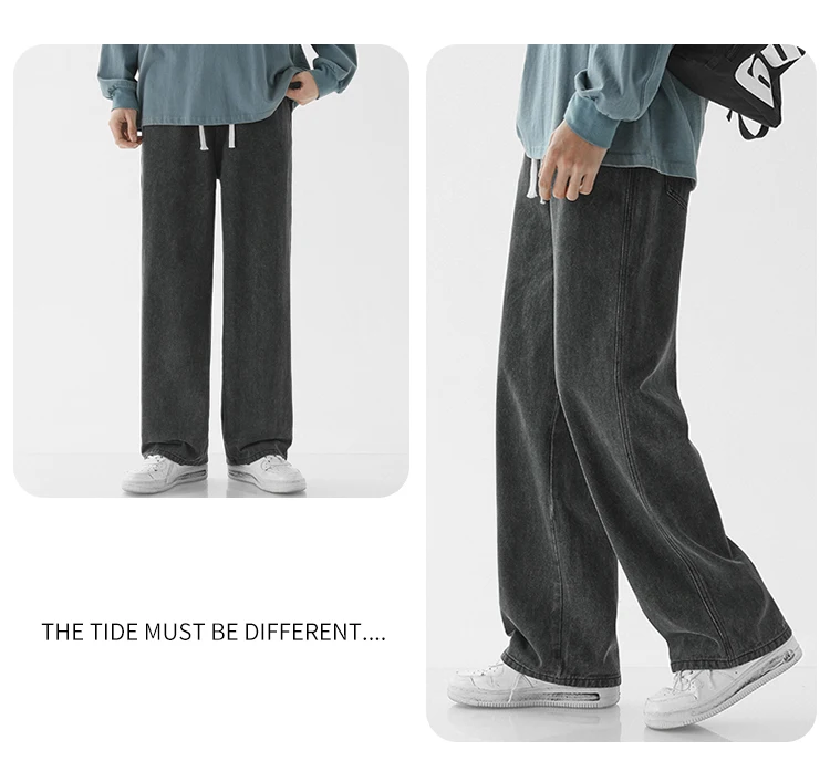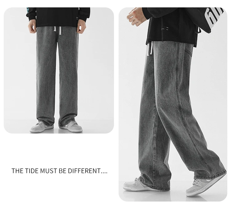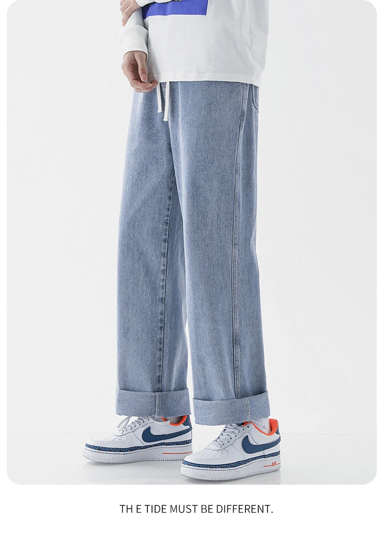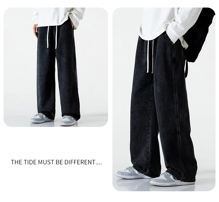 Spring Men Baggy Washed Jeans Drawstring Wide Leg Cargo Denim Pants Fashion Casual Trousers Male Designer Clothing Blue Black