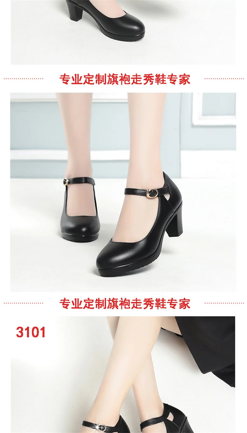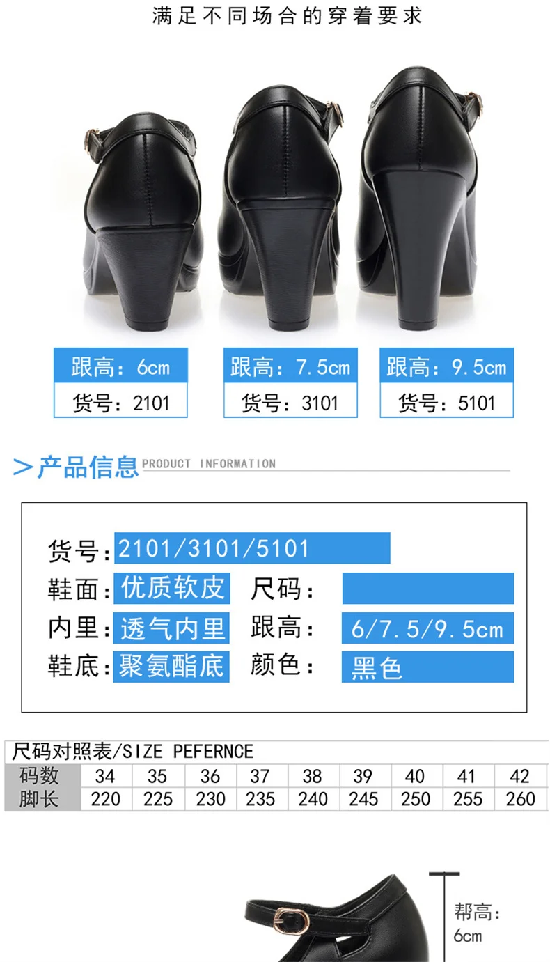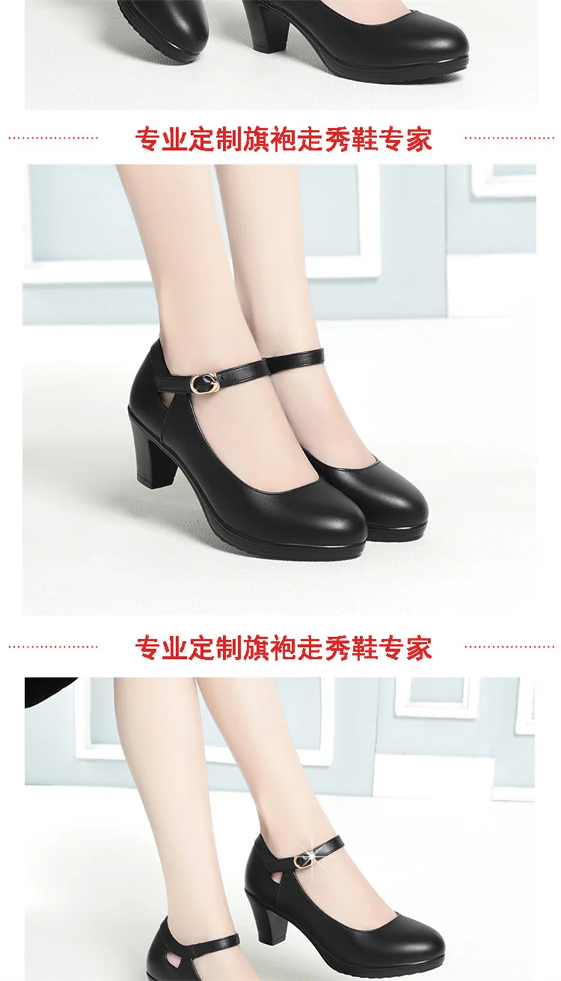 Spring Soft Leather Shoes Women Round Toe Platform Pumps Thick Heel Fashion Temperament Elegant Black Work Single Shoes