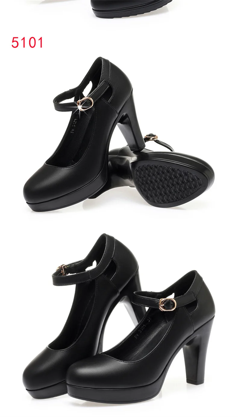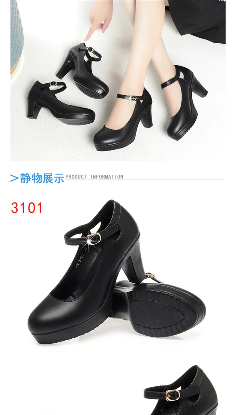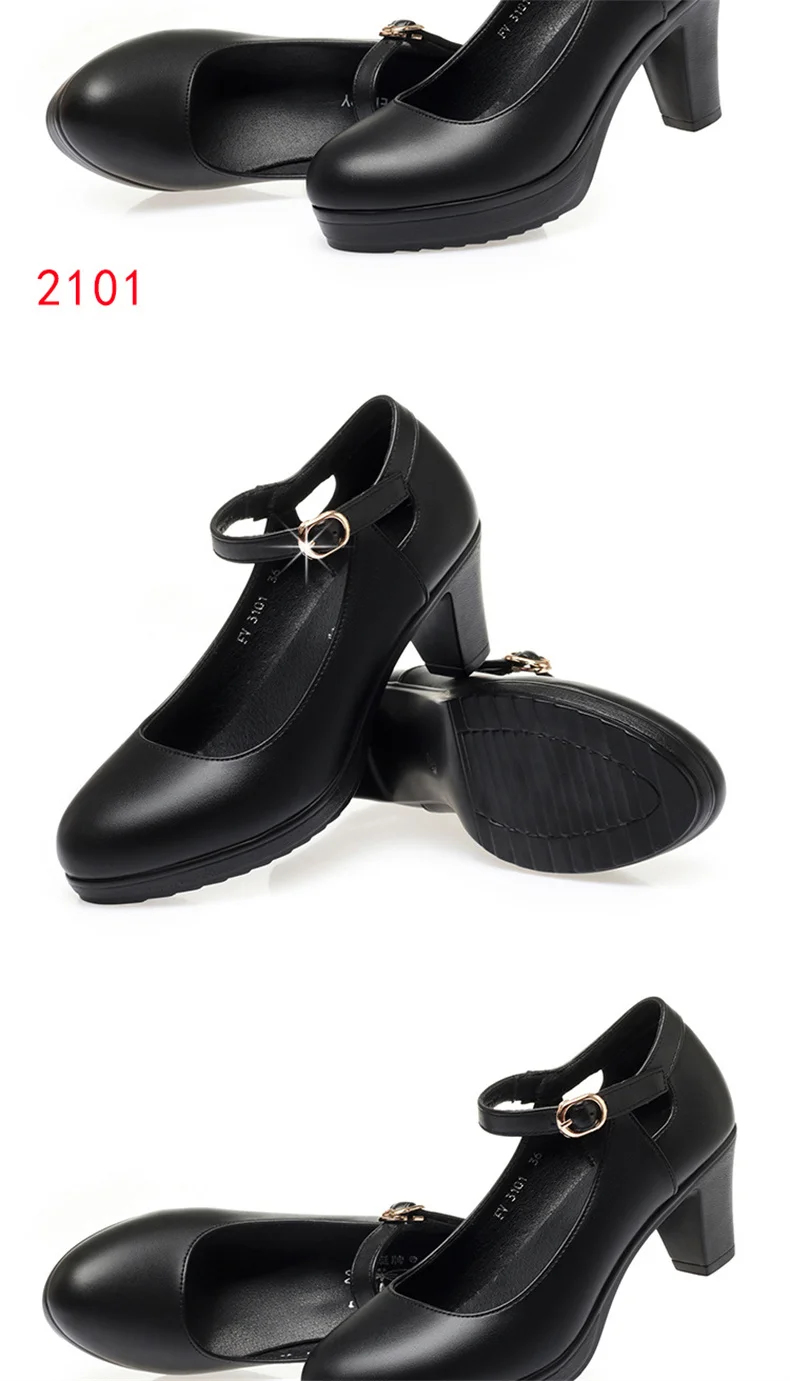 Spring Soft Leather Shoes Women Round Toe Platform Pumps Thick Heel Fashion Temperament Elegant Black Work Single Shoes