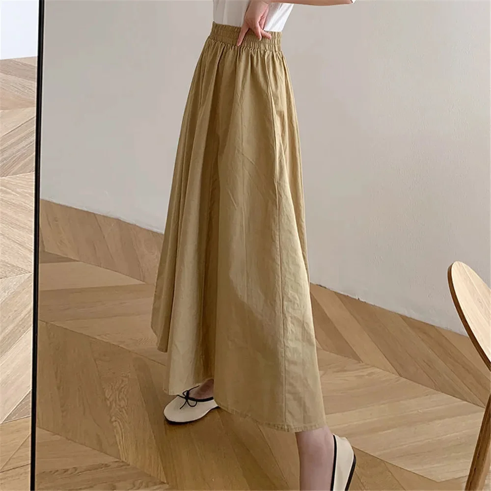 Spring Summer Autumn Elastic High Waist Loose Women All-match Midi Skirt Female Long Skirt Student Teenage Girls A-line Skirts