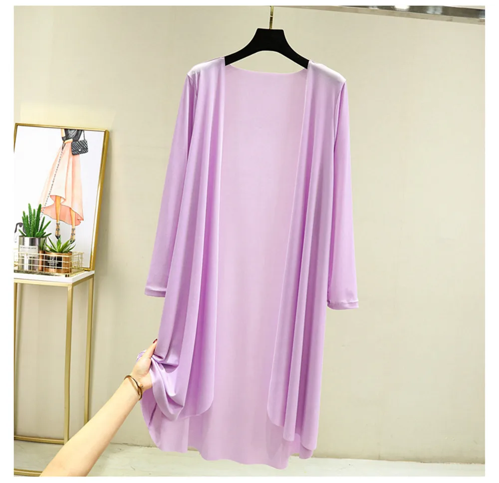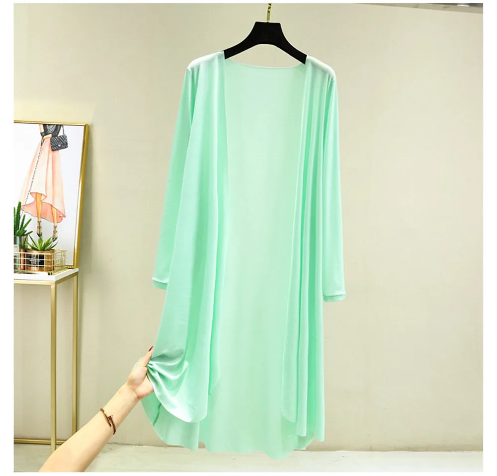 Spring Summer Cardigan Casual Night Dress Women New Long Sleeve Ice Silk Home Wear Loose Shirt Sun Protection Clothing ZY6583