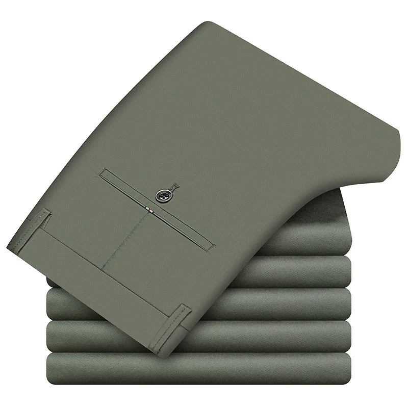 Spring Summer Cotton Casual Pants Mens Clothing Straight Business Green Black Khaki Trousers Male Brand 2022
