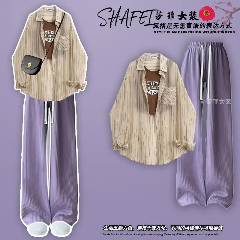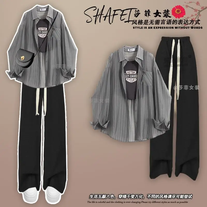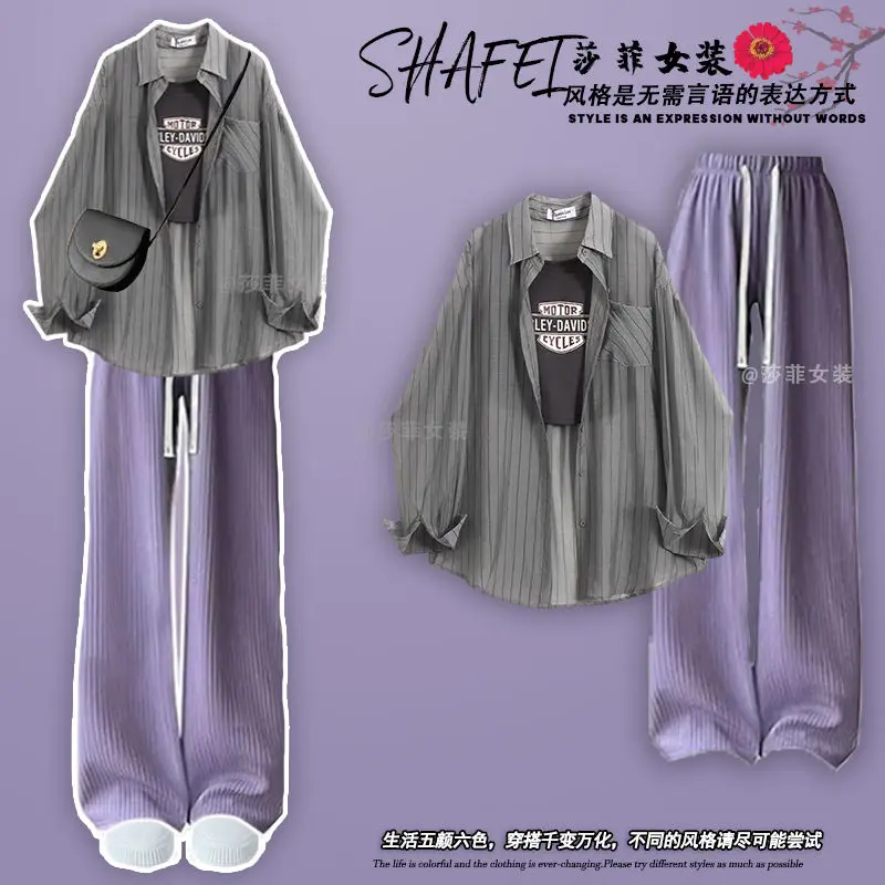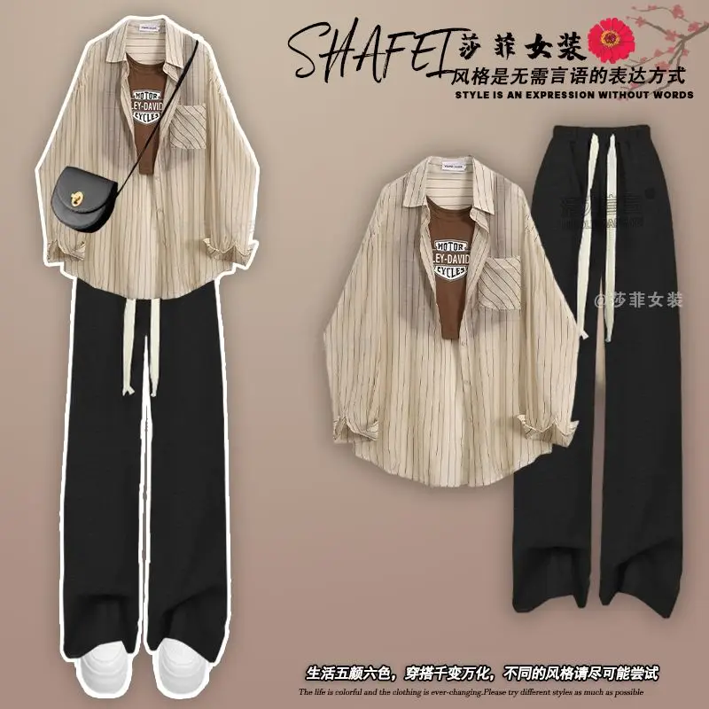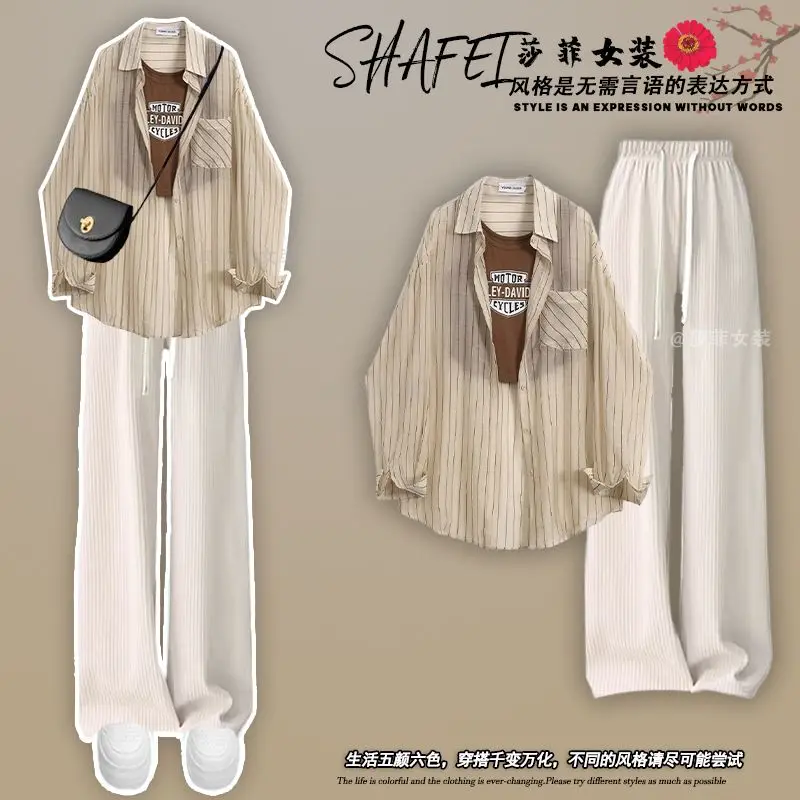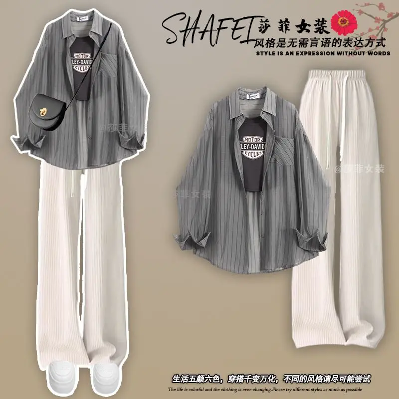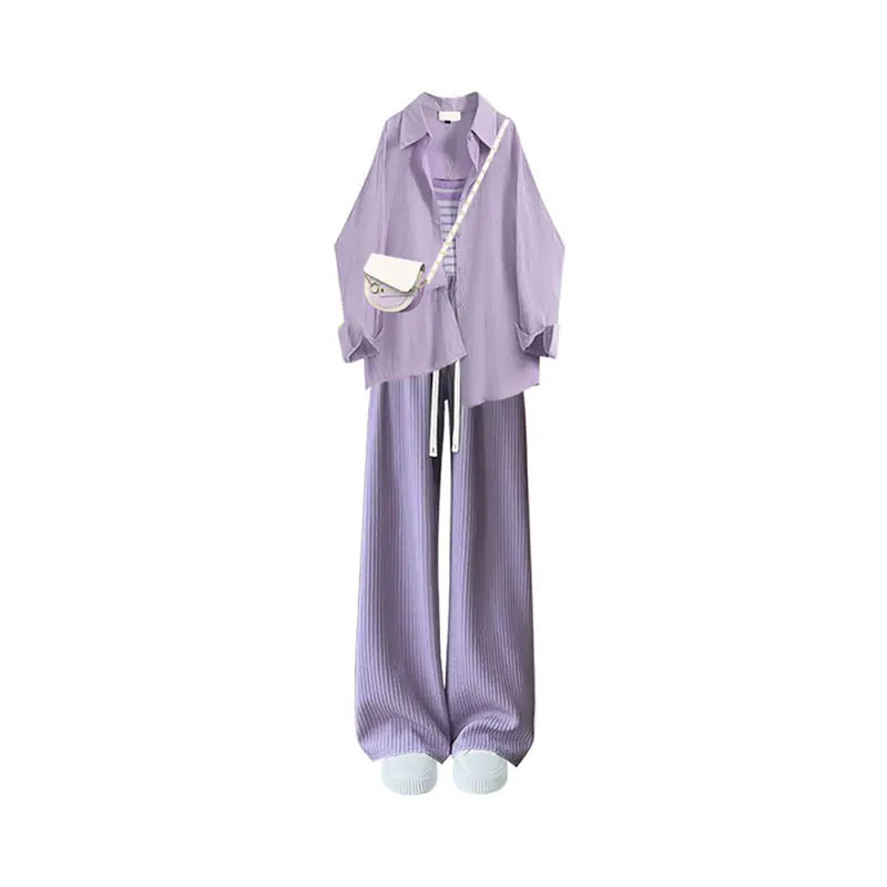 Spring/Summer Dopamine Wearing Set of 2024 New Korean Sunscreen Shirt Hanging Strap High Waist Casual Pants Three Piece Set