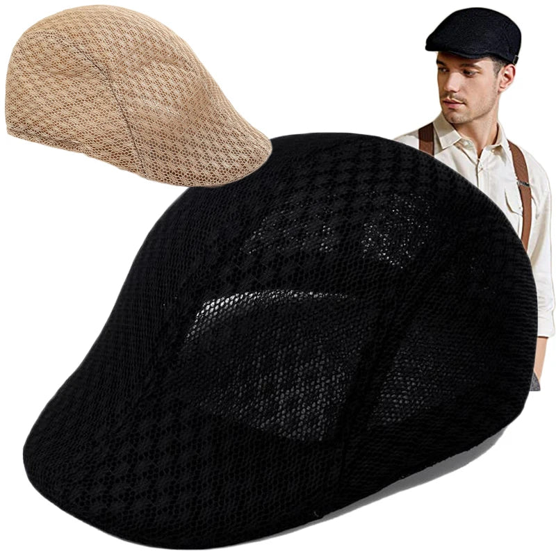Spring Summer Hollow Berets For Men Convenient Breathable Mesh Beret Hat Quick-drying Cap Retro Sun Hats Painter Caps