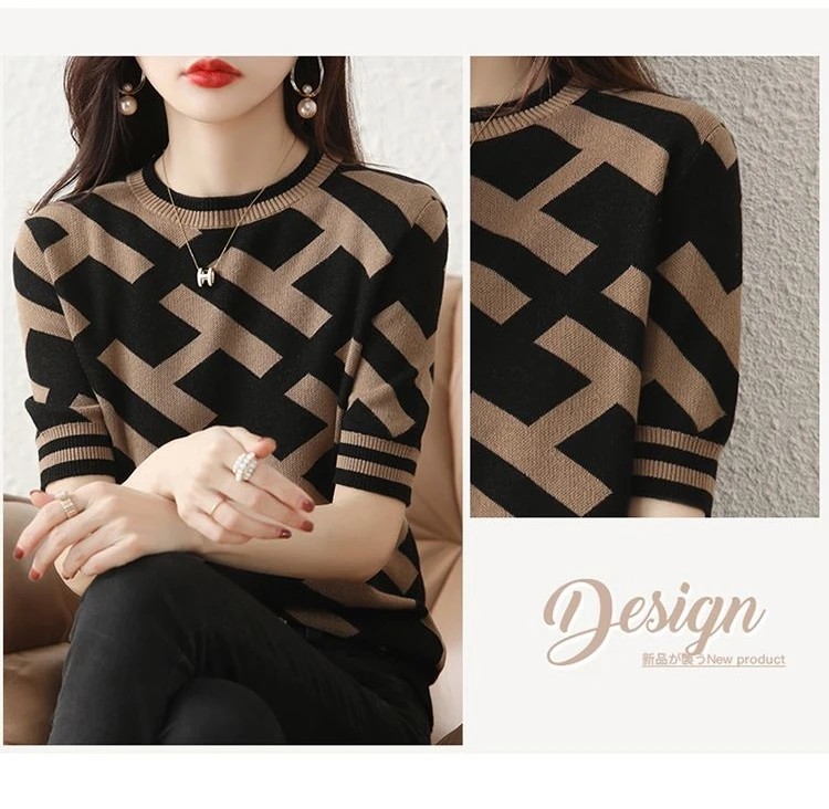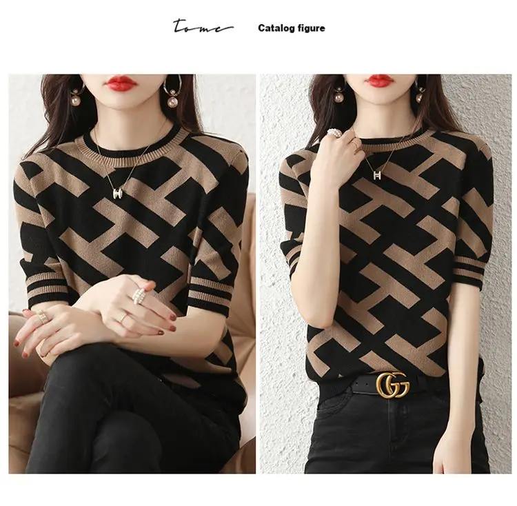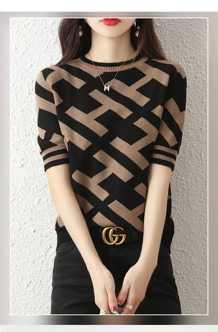 Spring Summer Knitted Top Classical Letter T-Shirt Short Sleeve Tee Korean Fashion Woman Blouse 2024 Cheap Women's Clothing Chic