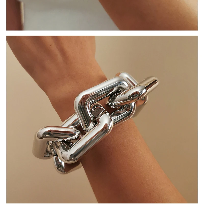 SRCOI Simple Punk CCB Chain Bracelet Exaggerated Geometric Square Twisted Thick Link Chain Bracelet Women Hip Hop Jewelry