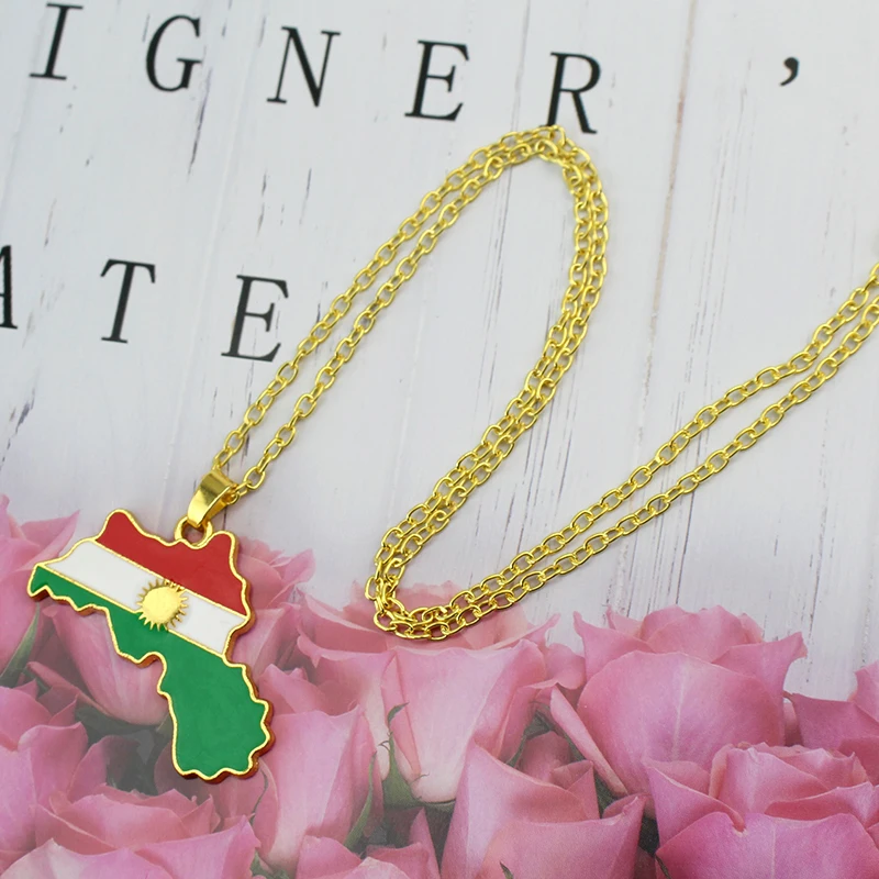 Stainless Steel Gold Silver Color Kurdistan Map Pendant Necklaces Kurdish Flag Map Jewelry