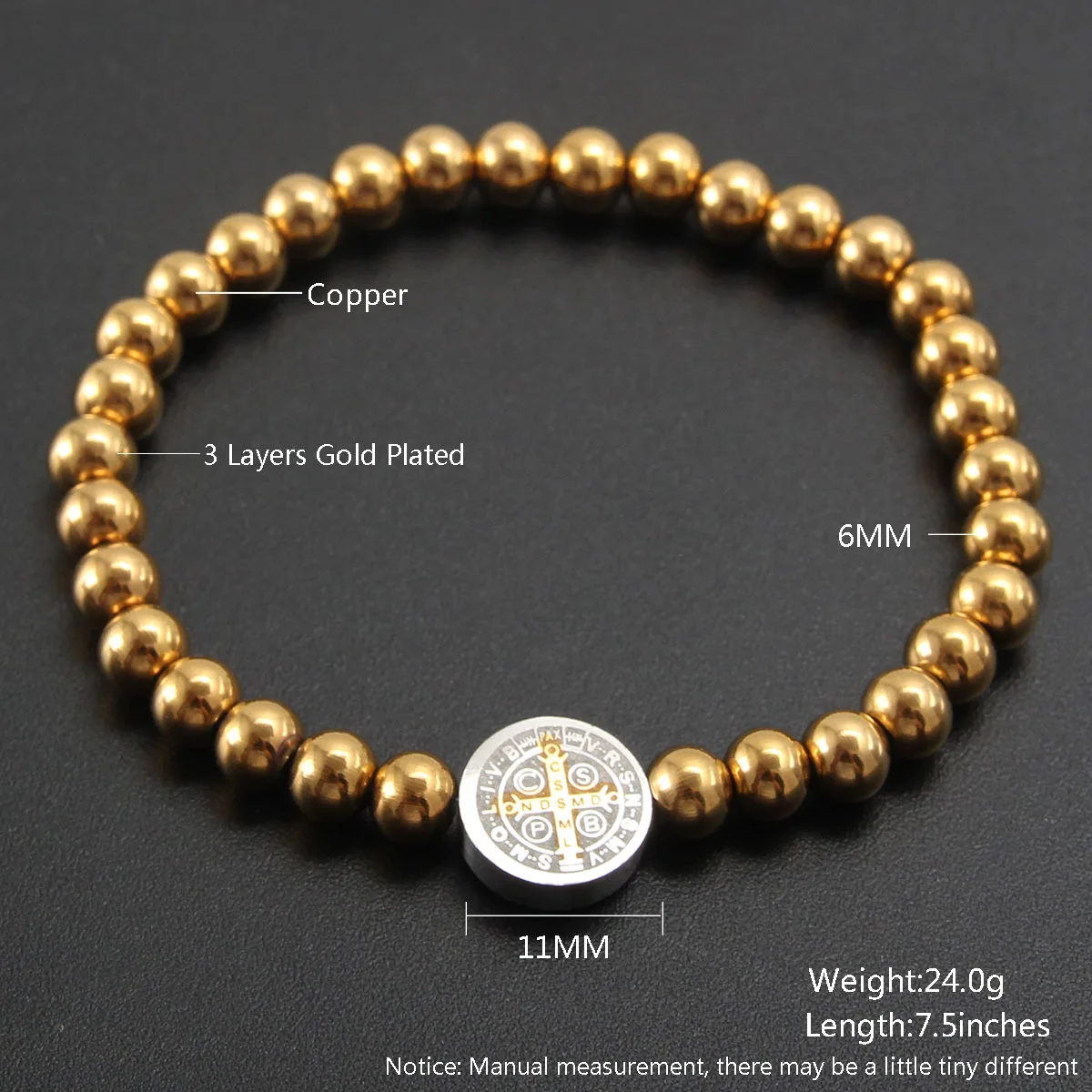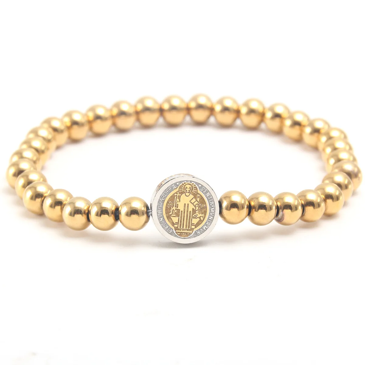 Stainless Steel San Benito Bracelet For Women Gold Color Metal St Benedict Cross Bracelet 6mm Bead Chain Pulseira