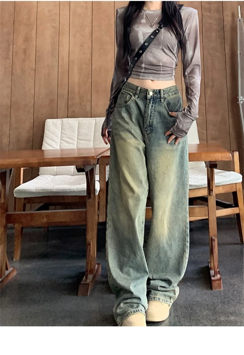 Stay Comfortable and Fashionable With Deeptown Y2k Baggy Wide Leg Jeans - A Must-Have for Casual Wear