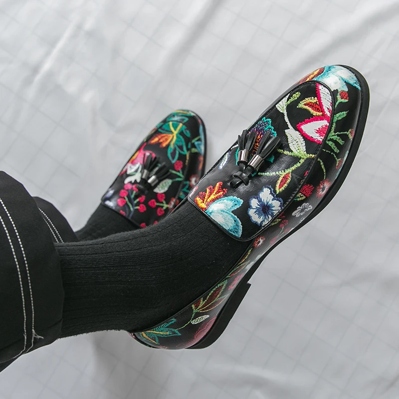 Street Style Male Loafers Pointed Casual Moccasins for Men Fringed Slip-on Men's Shoes Bean Boat Shoes New Fashion Driving Flats